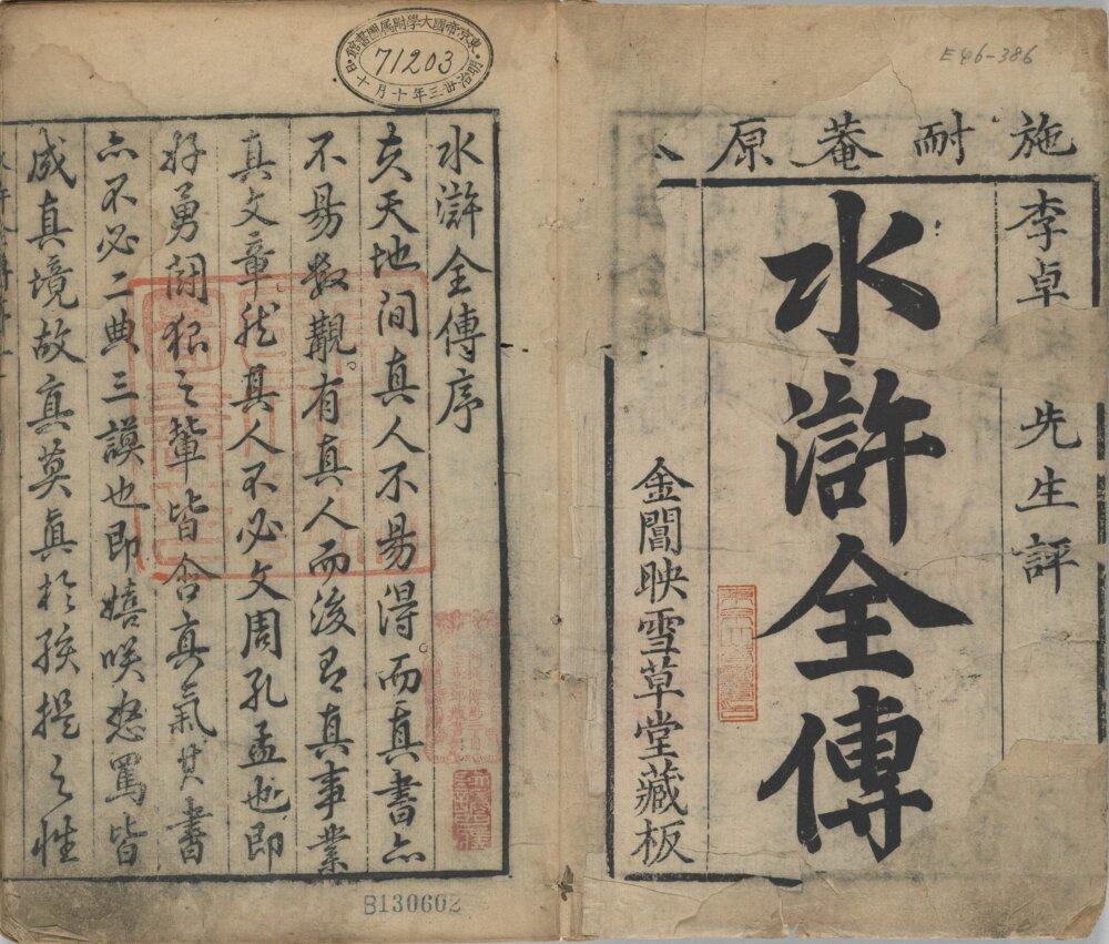 近日浙江有网友要求中小学教材删除与《水浒传》相关的内容,主要理由是“污蔑丑化女性”“歌颂滥杀无辜”“情节血腥暴力”等等。对此,浙江省教育厅的回复中说的,“重要的不在于你‘读了什么书’,而在于你‘怎样把每本书读好’”也得到了不少人赞许。 网友所提的,其实早是老生常谈。《水浒传》成书五百年以来,争议就未曾断过。 明刻金阊映雪草堂刊本 壹 如今所见的《水浒传》小说,大致成书不晚于十六世纪二十年代,即1520~1529年明朝时期。作者至今仍然众说纷纭,有施耐庵说、罗贯中说、施耐庵著前七十回罗贯中补全说、其它作者说不一而足。 《水浒传》情节来自于宋元杂剧戏曲故事,一旦成书就又很快再被改编成戏曲戏剧,因为它更能满足广泛的不识字受众,从而带来更大的商业利益,一如后代的小说改编为影视。来自于正史与戏剧又衍生为戏剧及野史,《水浒传》《三国演义》都是范例。 而戏剧跟小说不同,比如明代剧作家李开先(1502-1568)的传奇《宝剑记》,就把小说中寥寥几句的林冲心理描写充分展露: “[新水令]按龙泉血泪洒征袍,恨天涯一身流落。专心投水浒,回首望天 朝。急走忙逃,顾不得忠和孝。” 这段词即是后来昆曲和京剧中的名段《夜奔》。在电影《霸王别姬》里,旧时梨园子弟从小不必识字去读原著《水浒传》,但台词是必须牢记于心的。 受《水浒传》影响更深的杰作,是署名“兰陵笑笑生”的晚明小说《金瓶梅》。《金》是中国文学史上第一部文人独立创作的长篇小说,但情节终始和男女主角均直接来自《水浒传》的“武(松)十回”。除了西门庆、潘金莲,《金》中还有25个人物与《水浒传》同名,直接移用(今日标准则为抄袭)《水浒传》的韵文多达54处。虽然一则敷演英雄传奇、一则洞察世情人欲,但若以今日标准衡量,《金瓶梅》堪称《水浒传》不折不扣的同人文。 《水浒传》成书后最重要的一次迭代,则是金圣叹(1608-1661)的评点。评点小说虽然不自金圣叹始,但后人如脂砚斋评《红楼梦》无一不受其影响,所谓“批小说之文原不自圣叹创,批小说之派却又自圣叹开也”。 金圣叹只保留了《水浒传》的前七十回,而将后三十回视为糟粕弃去,从文本角度而言确是的见。他对《水浒传》的评价之高,认为甚至比司马迁的《史记》还好。金圣叹自己从十一岁读《水浒传》,一见就爱不释手终生不厌。后来他的儿子金雍长到十岁,他就急不可耐地将《水浒传》列入必读书单。在卖儿卖女、时见饿殍、当众处决的古代,《水浒传》并不显得特别暴力血腥。 贰 明亡清兴,明朝的遗民们复国而不可得,只有将愤慨与无奈放进文字里。顾炎武好友陈忱(1615-1670)所著的《水浒后传》续写水浒故事,讲述征方腊归来幸存的阮小七重新落草、李俊远赴海外执掌岛国暹罗,北宋遭遇靖康之变后剩下32位梁山好汉一起在暹罗安居乐业的故事。锦绣河山被占,遗民泪尽胡尘里王师一去不复返,只好寄望于海外的乌托邦。后来京剧中的名段《打渔杀家》,正是来自于《水浒后传》。 但早在明亡之前,《水浒传》就迎来了两百余年被禁的命运。崇祯十五年(1642),不知道自己两年后就要在煤山上吊的朱由检批准了刑部左给事中左懋第要求焚毁《水浒传》的上书,理由是山东屠夫李青山在梁山泊造反起事,正是因为《水浒传》流毒所致。虽然希望被朝廷招安的李青山最终被明廷诱杀,但造反的底层民众看不懂文言的《孙子兵法》却大致能看懂白话的《水浒传》确是事实,这也是导致《水浒传》被禁的重要原因。朱由检只是想不到一点:李自成未必看过什么《水浒传》。 “刘项原来不读书”,但读了毕竟更危险,所以清廷秉承明廷做法,对《水浒传》这样的小说一直明令禁毁,尤其以康熙、雍正、乾隆、嘉庆、道光时期最为严厉。《红楼梦》里的大家闺秀薛宝钗见识过写鲁智深大闹五台山的戏曲《虎囊弹·山门》“烟蓑雨笠卷单行”,也偷偷看过《西厢记》这样的黄色文学,但《水浒传》这样的禁书是难得一见的。 梁山108将长期只见其形不见其文。(戴敦邦绘) 比如雍正二年规定,违法刻印禁书如《水浒传》的“杖一百,流三千里”、卖书的“杖一百,徒三年”、看书的“杖一百”。乾隆十八年,皇帝上谕中更是首次点名《水浒传》“近有不肖之徒,并不翻译正传,反将《水浒》《西厢记》等小说翻译,使人阅看,诱以为恶。”由于《水浒传》早就恶名在外,所以修《四库全书》时《水浒传》连禁毁名单都没有进,因为早就是一发现就销毁根本用不着再上榜。 但《水浒传》被禁两百余年却始终未失传,原因或许有二:其一是天高皇帝远,清廷的禁令大地方有效、小地方未必无孔不入;其二是印刷术发明后,再要禁绝文字就比秦始皇一把火烧掉更麻烦。反正到了嘉庆之后,陆续出现的《施公案》《彭公案》《三侠五义》《儿女英雄传》这一批清代侠义小说,究极来源和所受影响最深的都是《水浒传》。 随着时代演进,到了光绪、宣统时期,比禁毁小说更焦头烂额的内忧外患多得数不胜数,《水浒传》在市面上也就越来越常见。看着侠义小说长大的唐芸洲写《七剑十三侠》、李善基(还珠楼主)写《蜀山剑侠传》,由《水浒传》影响而生的侠义小说从此演化出现代武侠小说。而从小看着《水浒传》和剑侠剑仙小说长大的金庸,在吸收了西方小说理论之后,又创出了影