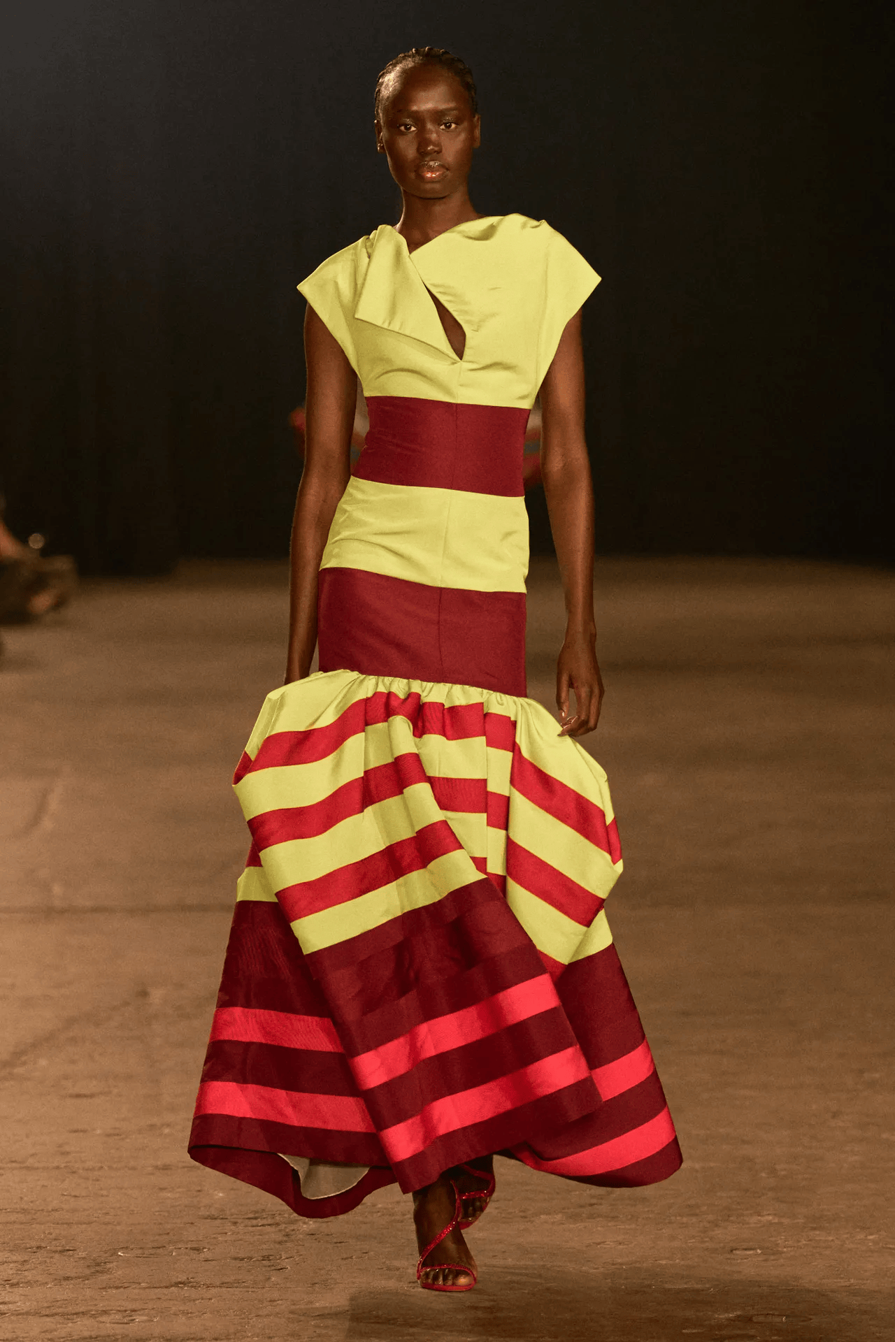 柠檬草是一种柠檬绿,略带甜味和花香。Christopher john rogers 2025秋冬系列,柠檬草与多种颜色拼接,撞色搭配亮眼又吸睛。