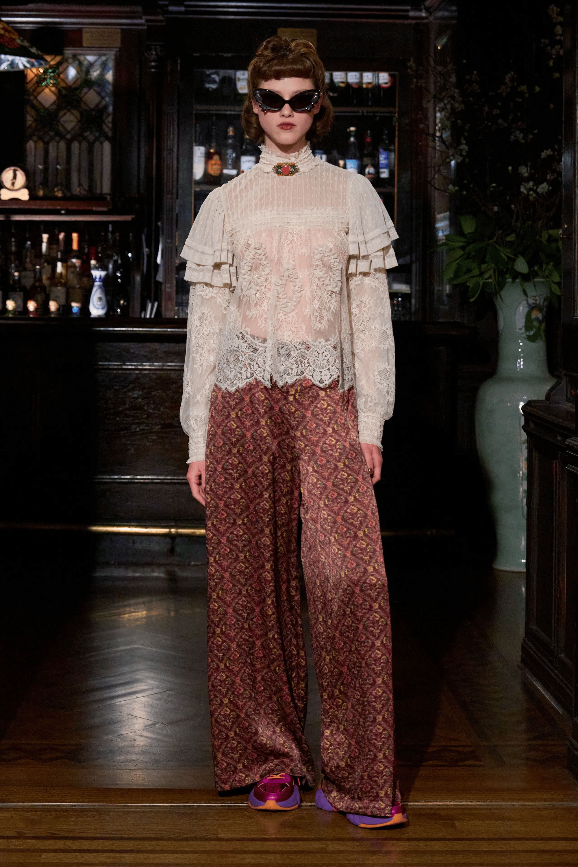 热巧克力是一种温馨舒适的色调。Anna Sui 2025秋冬系列,巧克力色的套装、长裤,温暖又不失优雅。