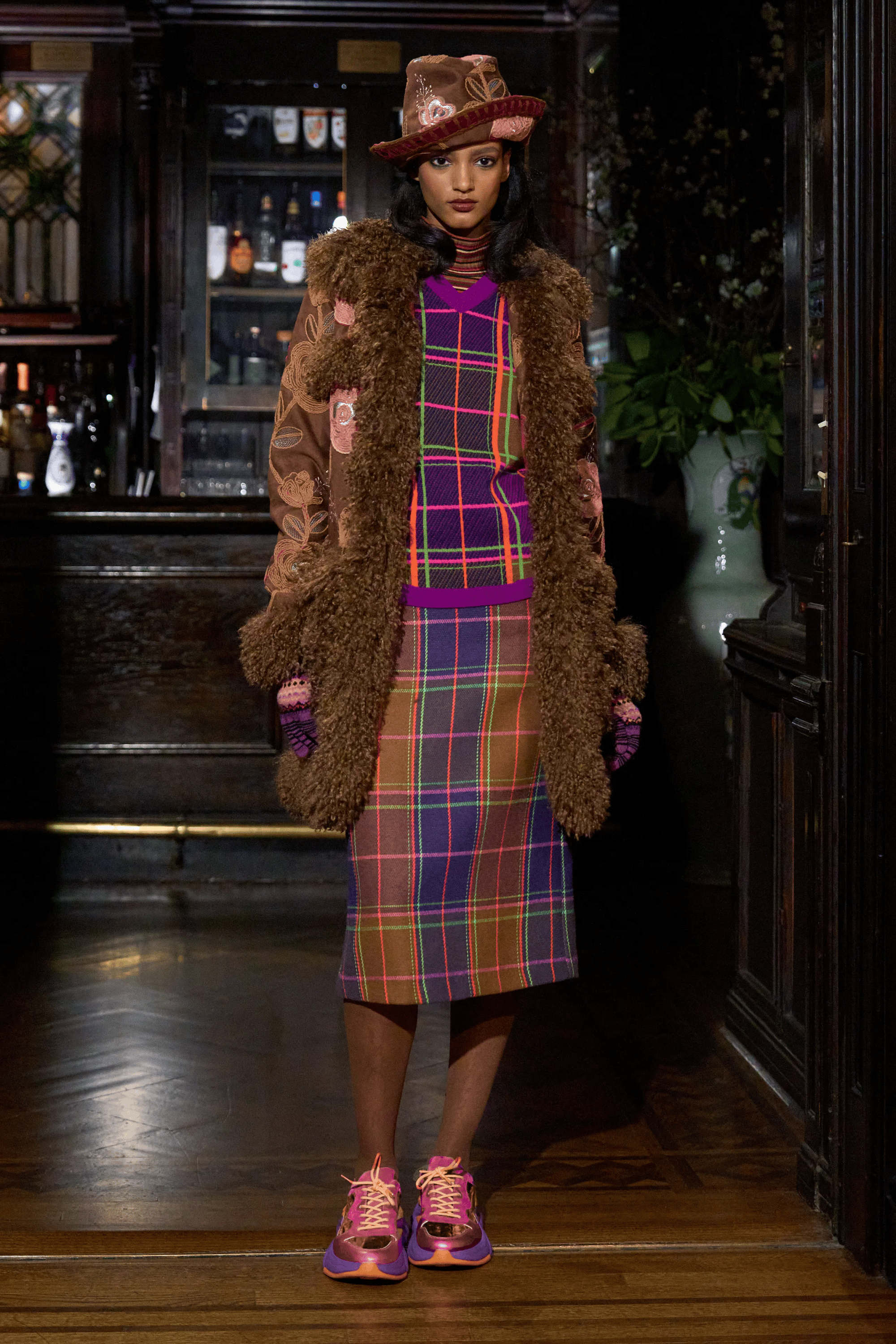 白兰地瓜是一种柔和的橙色,带有“微妙的香料味”,为色调带来温暖。Anna Sui 2025秋冬系列,采用了丰富的色彩组合,橙色与棕色等色彩搭配,营造出浓郁的复古氛围。