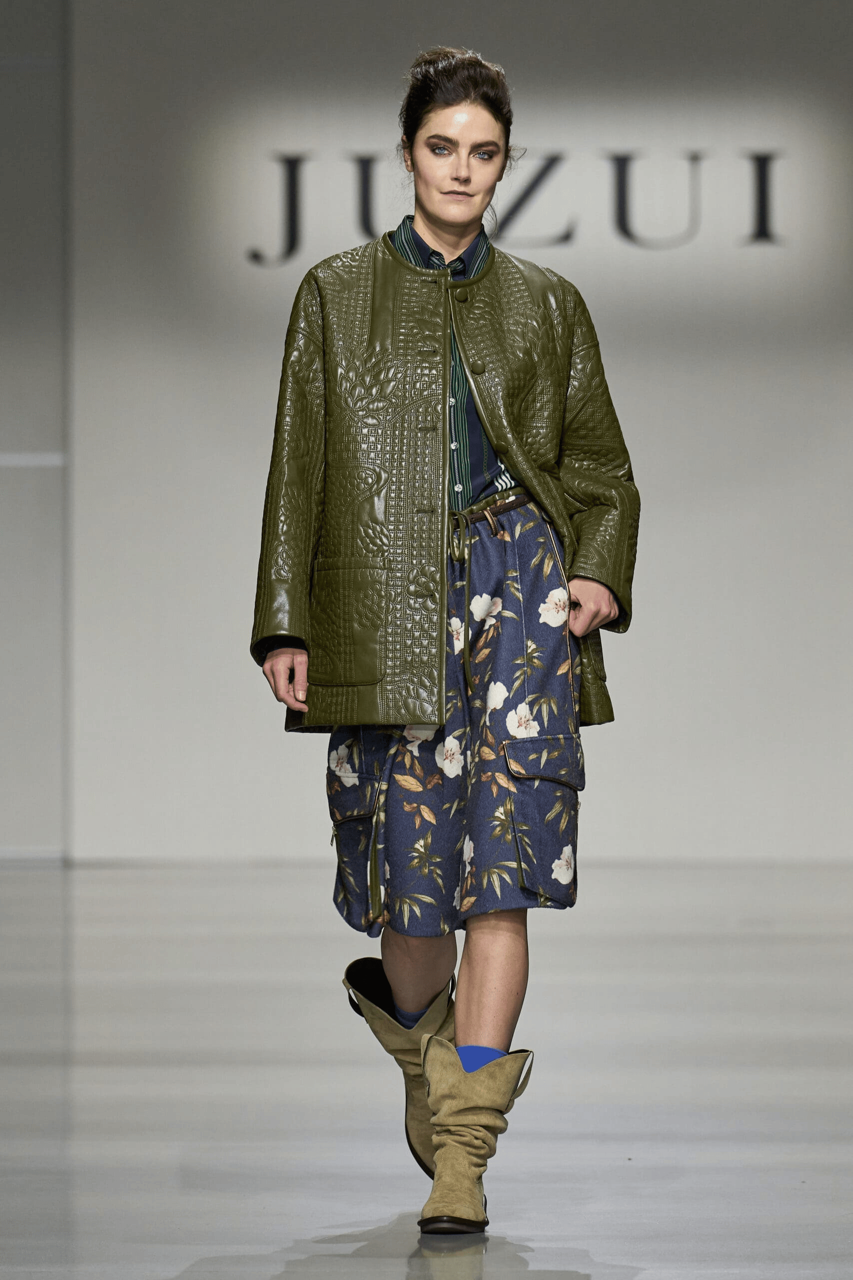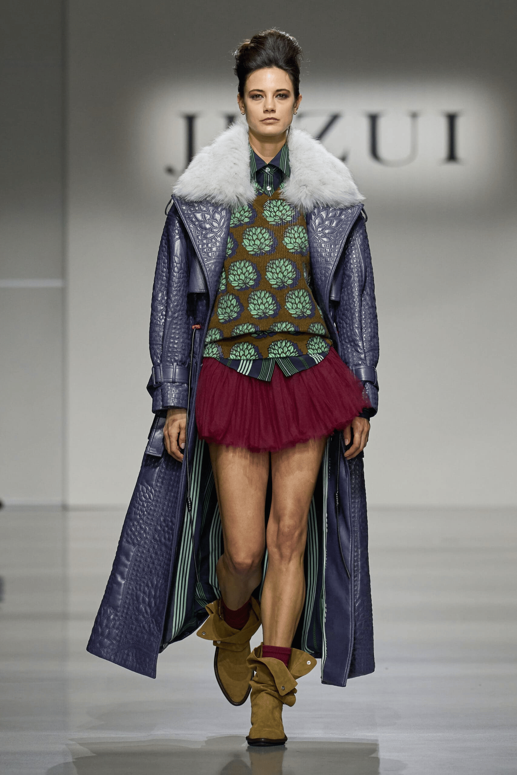 皇冠蓝是一种稳定的经典蓝色,象征着永恒的优雅。JUZUI 2025秋冬系列,皇冠蓝色调为廓形外套、裙装与科技感面料注入沉稳而神秘的魅力。