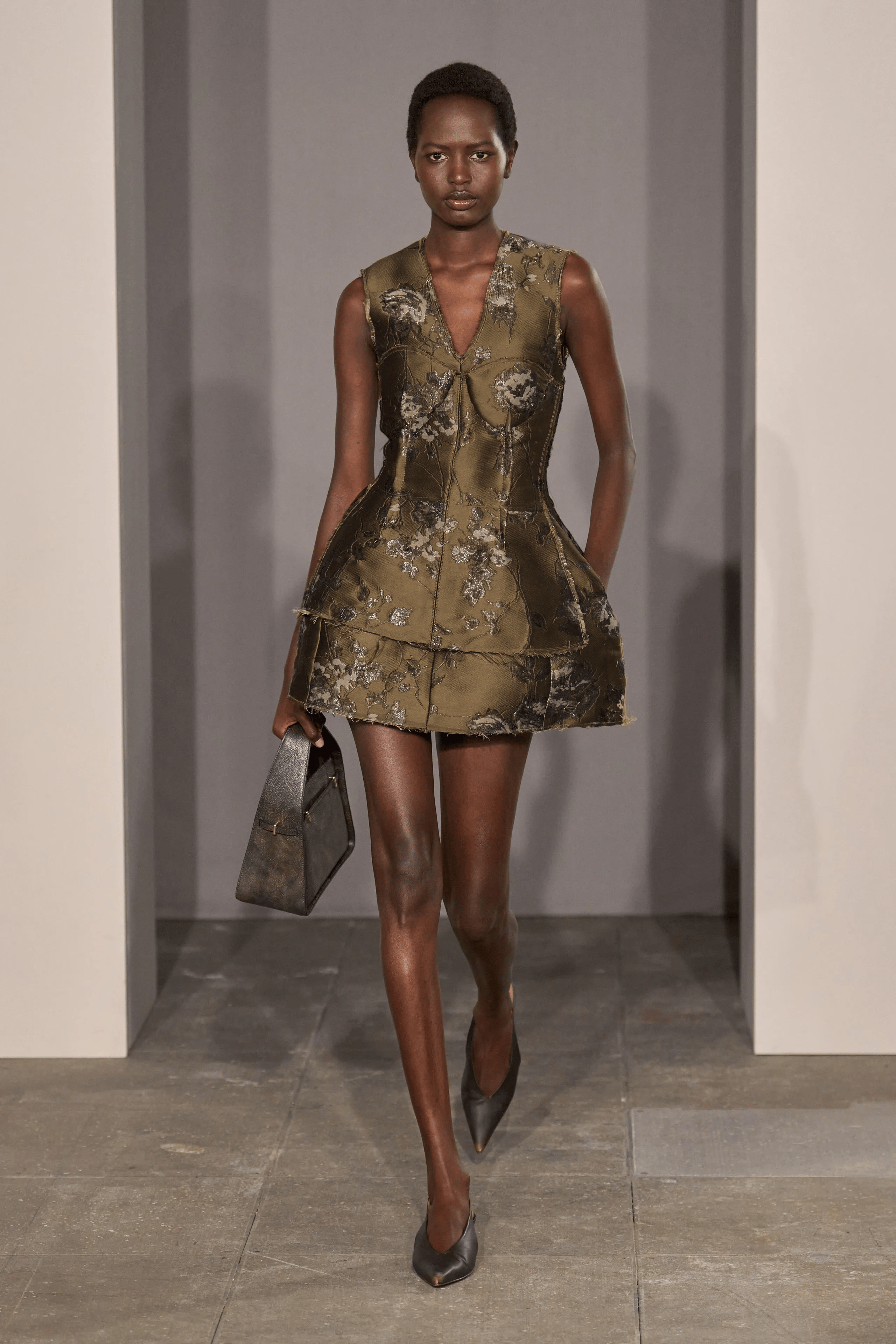 青铜棕是一种有光泽的金棕色,优雅而自然。Simkhai 2025秋冬系列,青铜棕色调应用,为冬日增添温润复古格调,展现出刚柔并济的力量。
