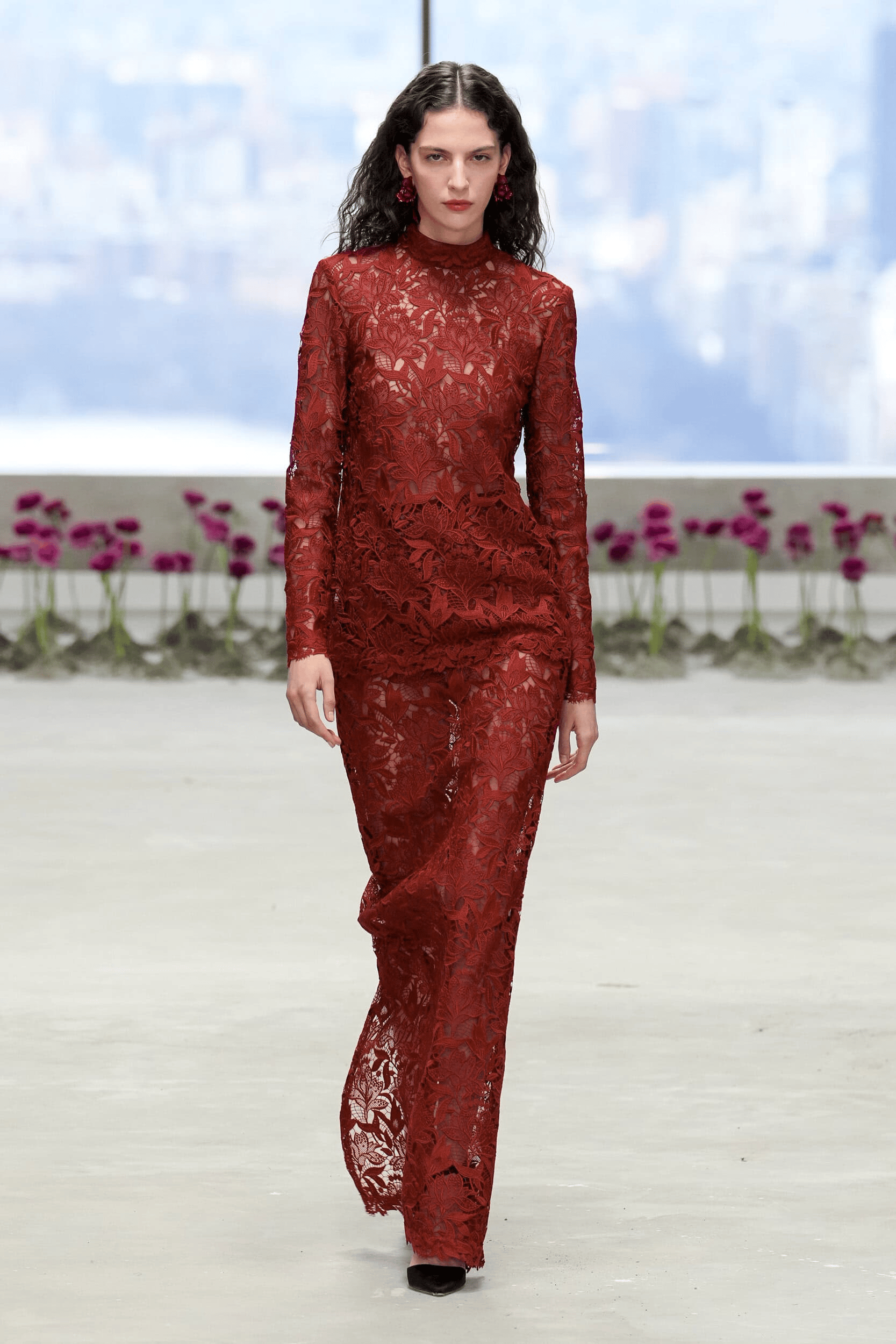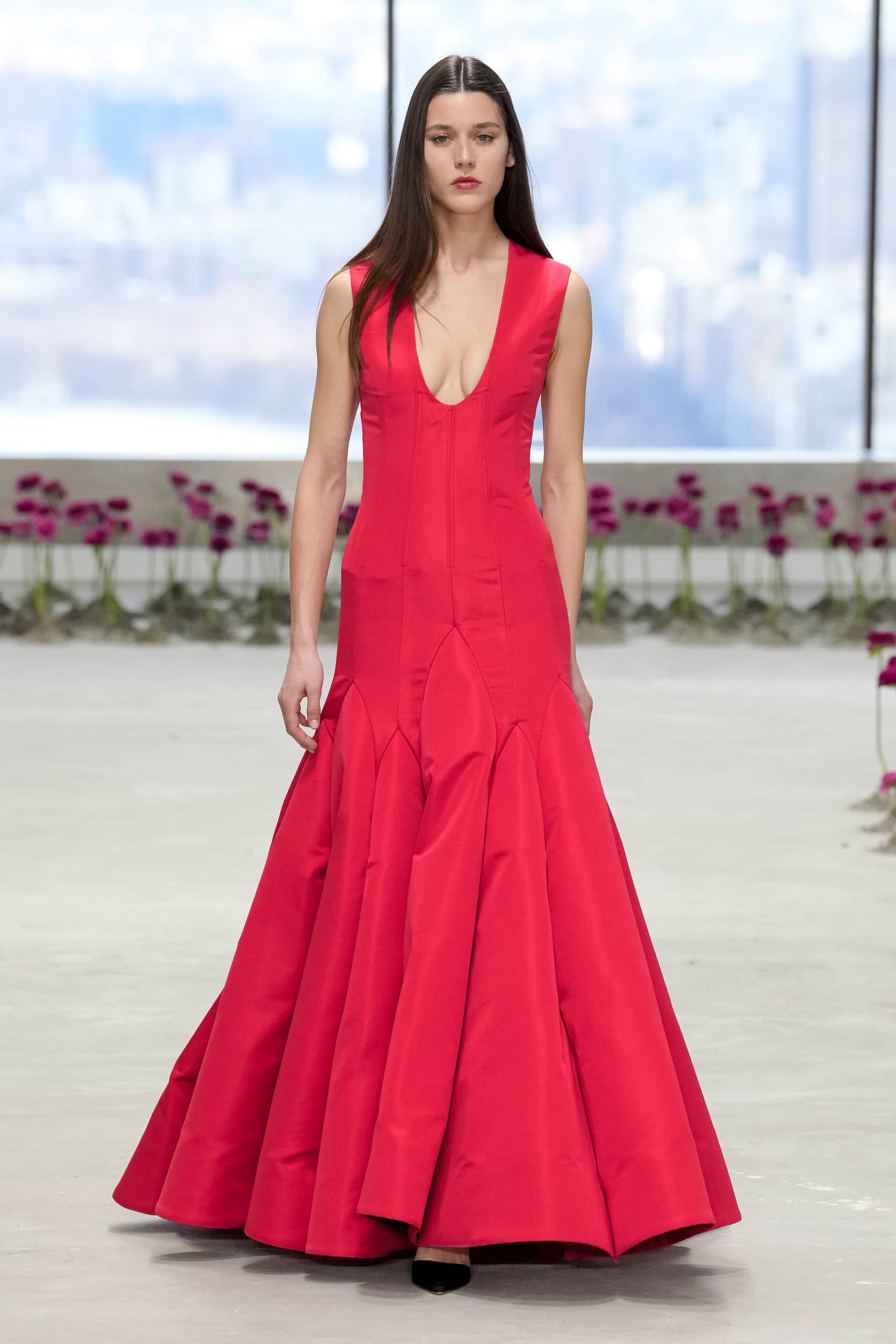 辣椒油是一种充满浓郁和活力的红色,明亮但永恒。Carolina Herrera 2025秋冬系列,深邃浓郁的红色长裙,飘逸灵动,尽显优雅浪漫。