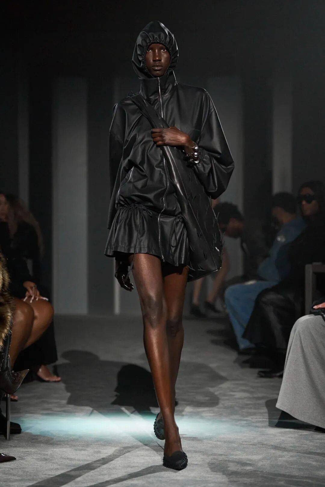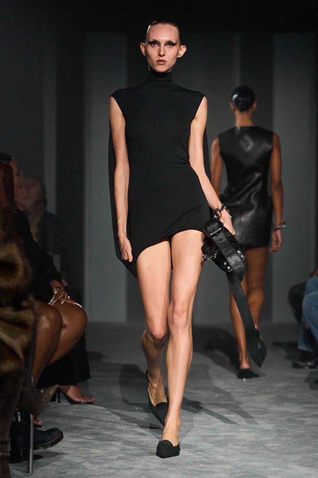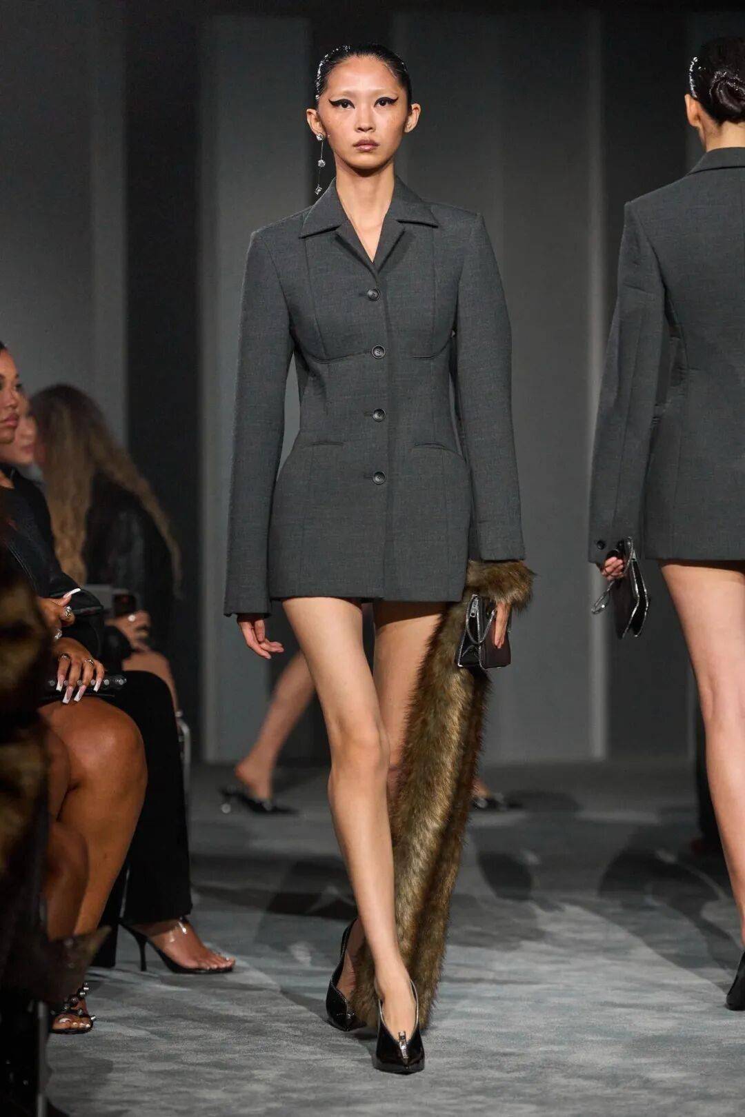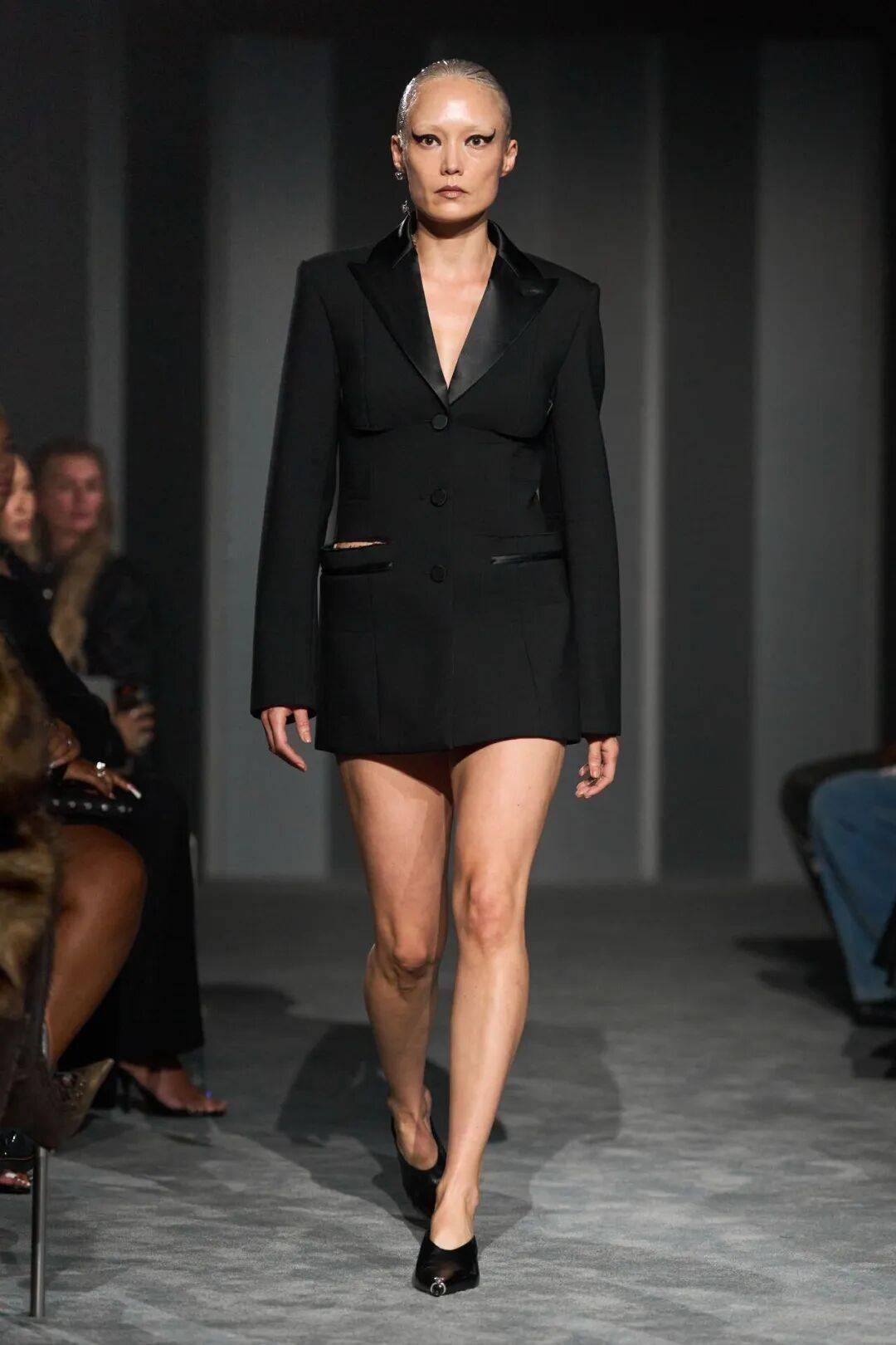 在品牌二十周年之际,最懂女人心的Alexander Wang强势回归。 系列以「女领袖 The Matriarch」为题,灵感源自Alexander Wang的母亲和所有像她一样自信坚定、毫不妥协的独立女性,正是这些「自创立之初便驱动自己灵感的女性」成就了这套自信从容的着装语言。 系列聚焦力量感着装,结构设计不再沿用传统男装廓形,而是源自女性本身的躯体线条。 曲线感十足的修身西装,在胸下与髋骨处精准剪裁,灵感源自剪纸艺术,刻意展露曲线。 力量感不再源于僵硬拘束,亦无需柔化,而是来自精准剪裁、自在舒适与自信魅力。