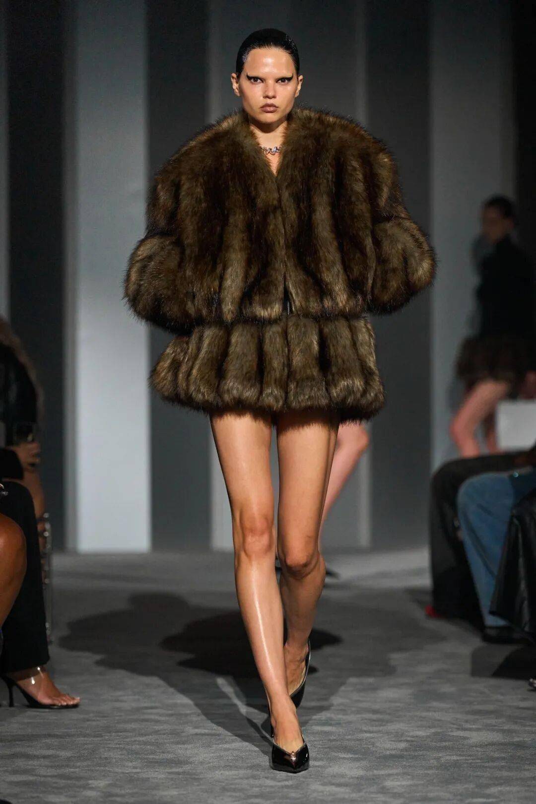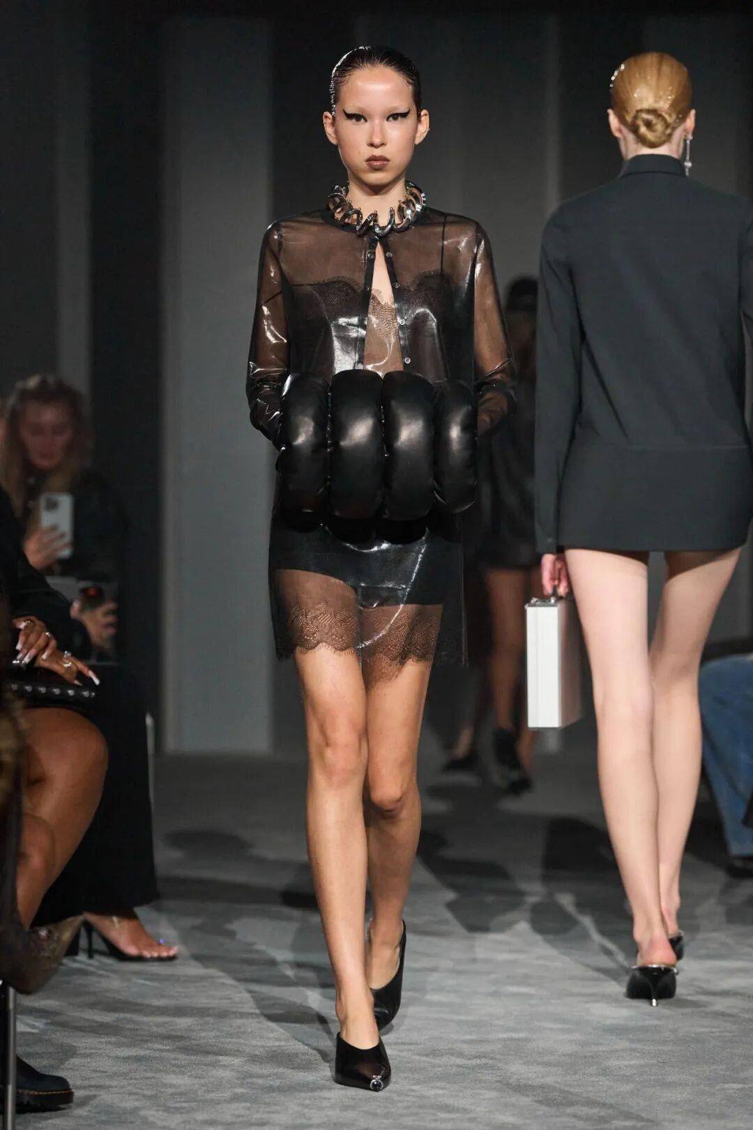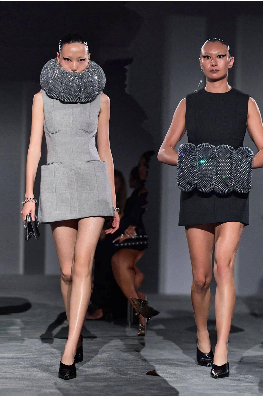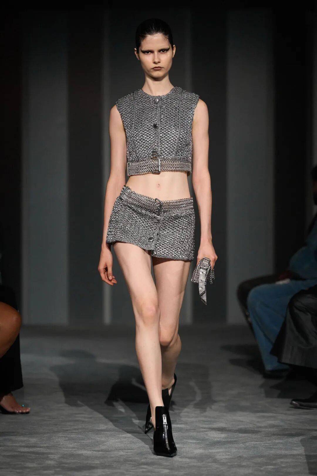 在品牌二十周年之际,最懂女人心的Alexander Wang强势回归。 系列以「女领袖 The Matriarch」为题,灵感源自Alexander Wang的母亲和所有像她一样自信坚定、毫不妥协的独立女性,正是这些「自创立之初便驱动自己灵感的女性」成就了这套自信从容的着装语言。 系列聚焦力量感着装,结构设计不再沿用传统男装廓形,而是源自女性本身的躯体线条。 曲线感十足的修身西装,在胸下与髋骨处精准剪裁,灵感源自剪纸艺术,刻意展露曲线。 力量感不再源于僵硬拘束,亦无需柔化,而是来自精准剪裁、自在舒适与自信魅力。