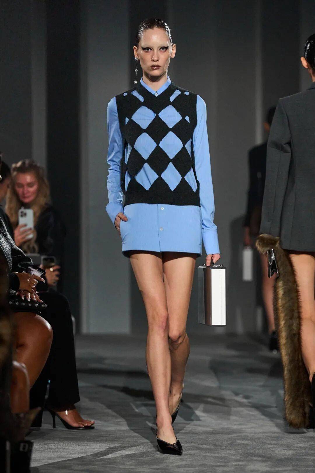 当宾客步入纽约时装周的秀场,首先映入眼帘的并非 Alexander Wang 标志性的街头酷感,而是一幅打破预期的画面:“家政女王” 玛莎・斯图尔特(Martha Stewart)正专注地玩着麻将。这个充满东方韵味的场景,为 Wang 品牌 20 周年大秀奠定了跨越文化与代际的基调 —— 一场向 “阿尔法女性”(Alpha Female)致敬的时尚叙事,一次 “Wang Girl” 形象的华丽回归与重塑。