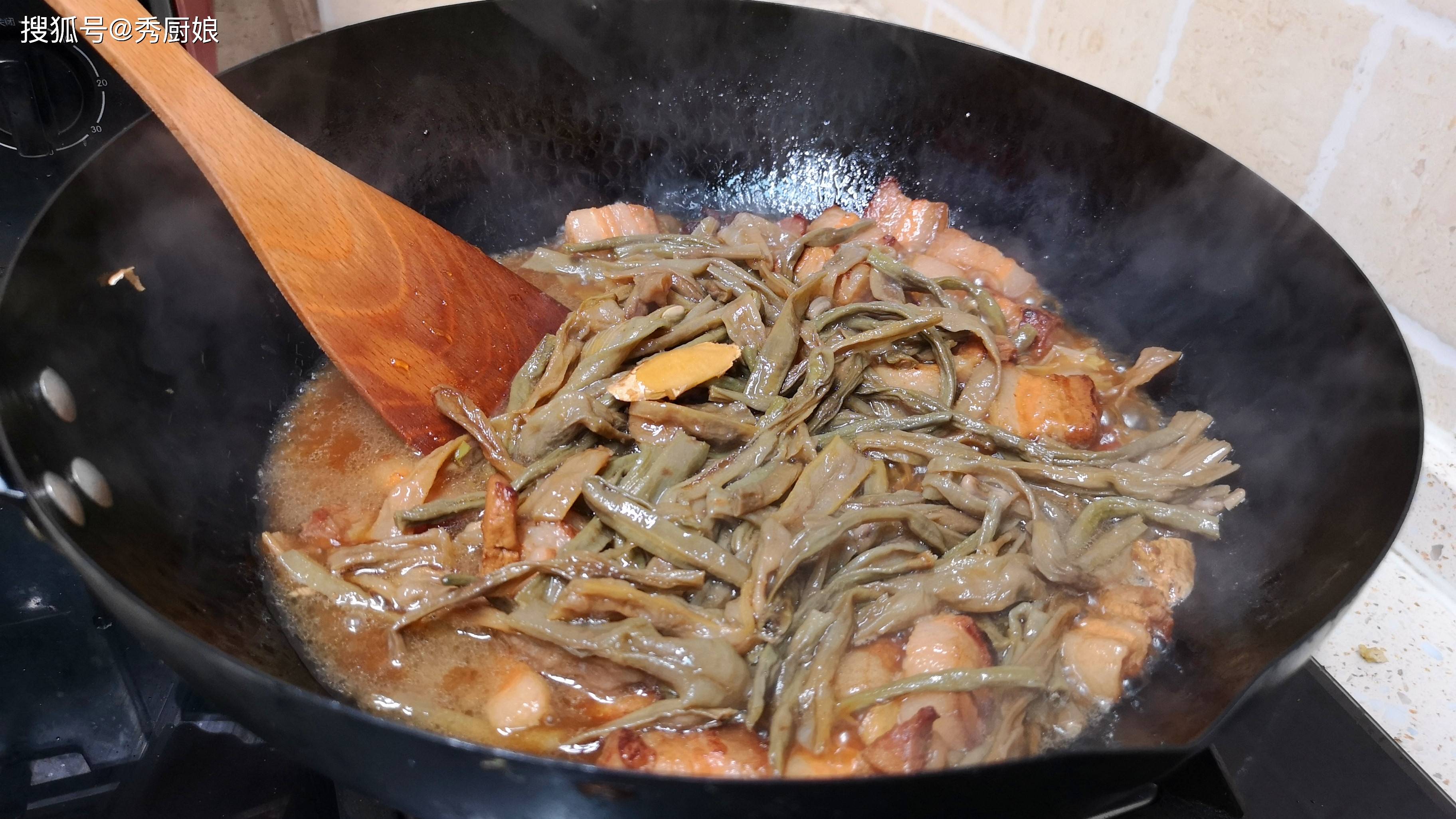 5. 加入干豆角:40分钟后,打开锅盖,放入泡发好的干豆角,翻拌一下,让干豆角浸在汤汁里。根据口味加适量的盐调味。继续盖上盖子,小火再炖20-30分钟。直到五花肉软烂入味,干豆角吸饱了肉汁,变得油亮软糯。最后开大火,把汤汁收浓一些,即可出锅。 秋天晒的是菜,冬天收获的却是满满的幸福和踏实的温暖。趁着秋光正好,动动手,为家人的冬日餐桌,添上一抹浓香吧! |