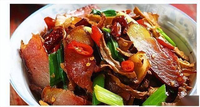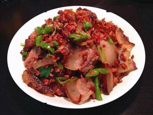 12、将腊肉入锅加剩余油炒至肥肉部分略卷,盛起,留底油
