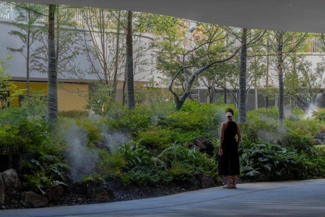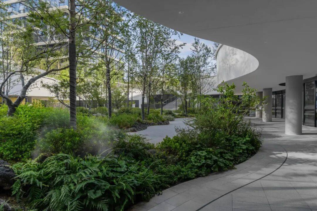 ↑以蜿蜒洄转的森系绿岛营造出如在森林中自由漫游的沉浸体验 © 栾·摄影 以池杉与河桦构建森林骨架,下层搭配绿色系耐阴地被,通过冷暖、深浅的细腻变化,强化空间的清凉感与自然意境。