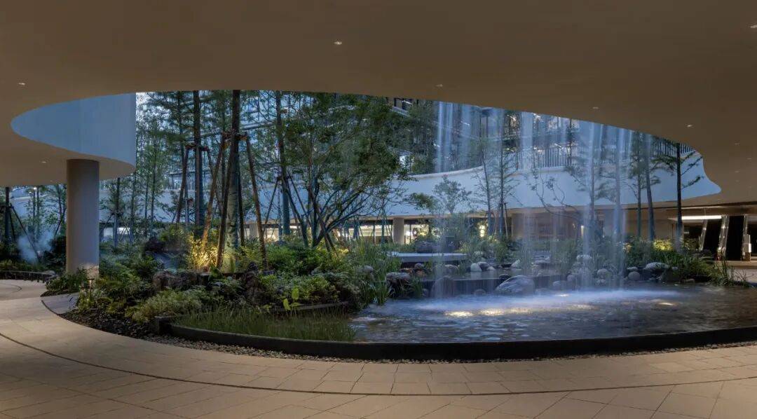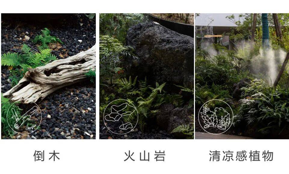 ↑设计从建筑意象到景观意境的转化 © 阿普贝思 以泉、溪、瀑、岩石、倒木以及清凉感植被组合,构建出可感知自然质感、声音与气息的山谷调色板,提供真实在场的全感官沉浸。从“展示性的奢华”转向“体验性的奢侈”——一种源于真实生命痕迹、不可被数字化的松弛氛围,让人重归自然。