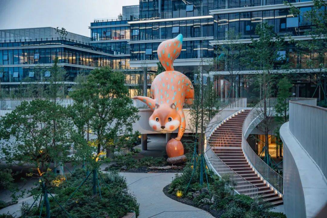 ↑随着松鼠雕塑的引导前往下沉庭院 © 栾·摄影