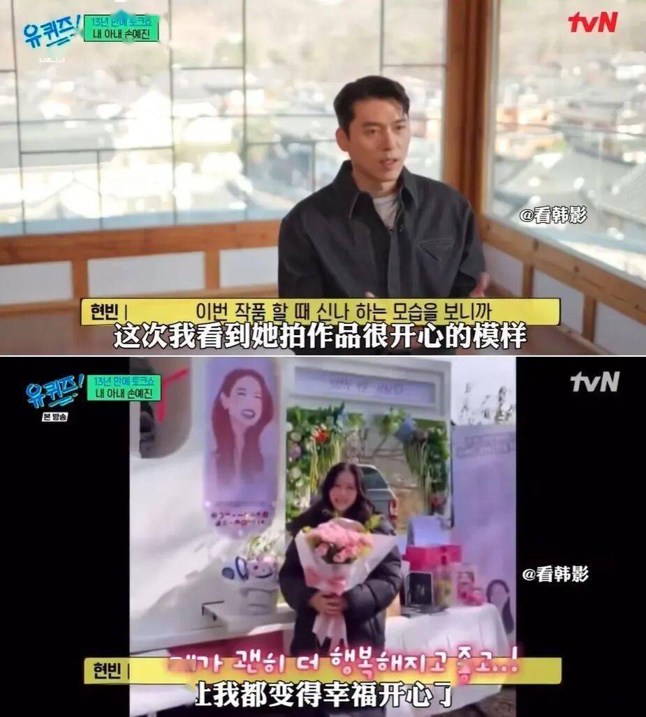 (微博@看韩影) 所以孙艺珍产后复出的第一部戏《无可奈何》玄彬特别支持,还用儿子的名义送了咖啡车到片场应援。 “我看到她拍作品很开心的模样,让我都变得幸福开心了。”