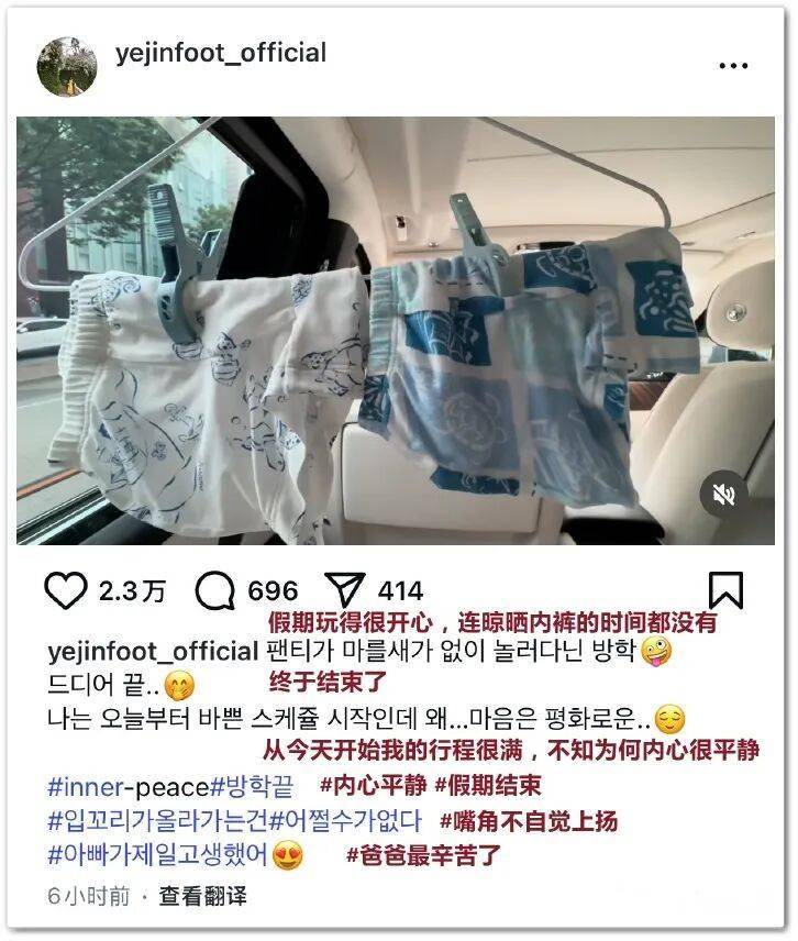 婚后夫妻俩不常同框秀恩爱,晒出的都是一些柴米油盐。 在车后座晾着来不及干透的宝宝的裤子……