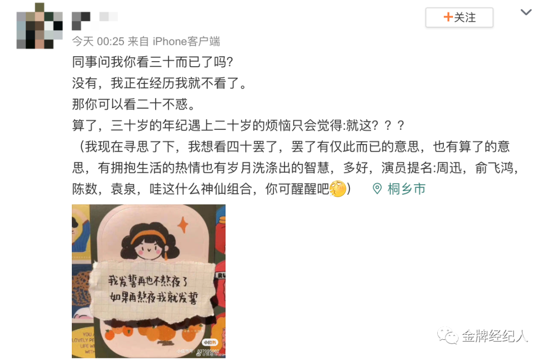 在微博搜索相关词汇,有这么一则讨论很有意思,“我现在寻思了下,我想看四十罢了······有拥抱生活的热情也有岁月洗涤出的智慧”。她想象中演这部剧的演员有周迅、俞飞鸿、陈数、袁泉等人。