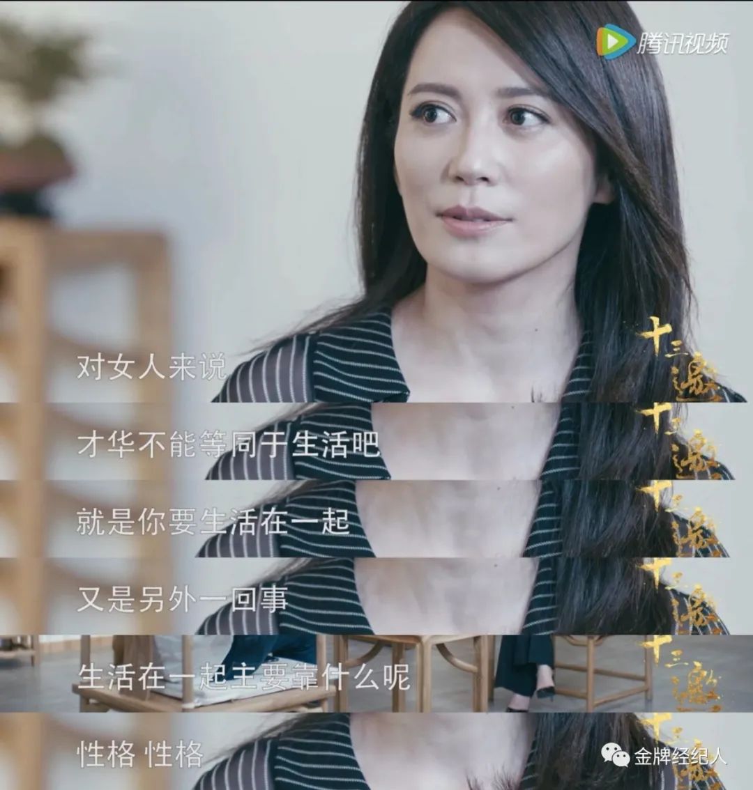 在《十三邀》里,她说自己不去追求才华横溢的男人,因为亲密关系里,男人的性格远胜过成就。