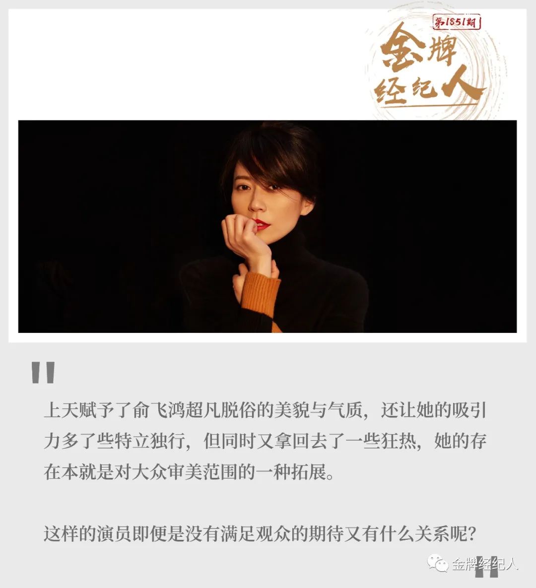 这样的评价俞飞鸿不可能不知道,外界认为的“烂片”或是不值得接的剧本可能在她看来根本不是这么回事,她好像从来没有被外部环境裹挟过。