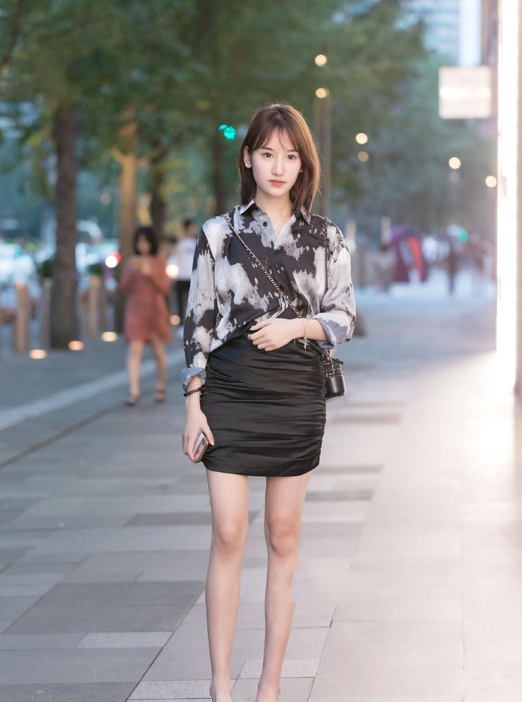 黑裙尽见大腿白