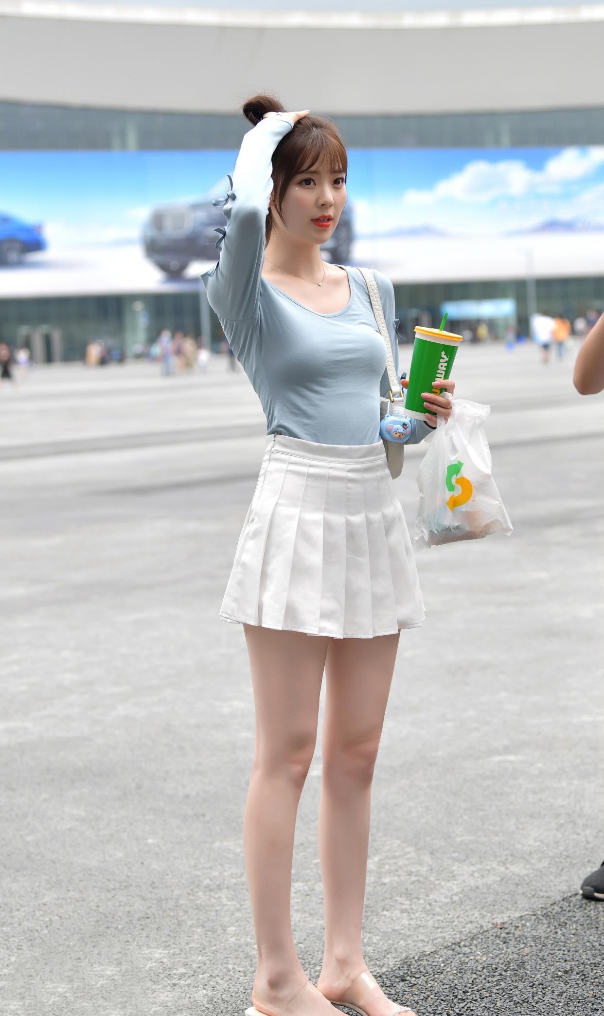 “百褶裙”时髦女吸引人