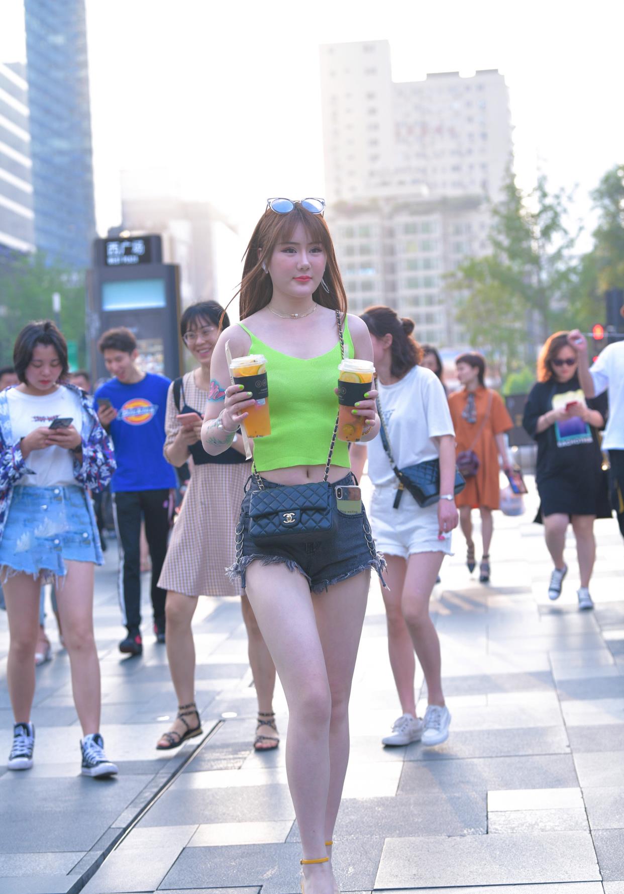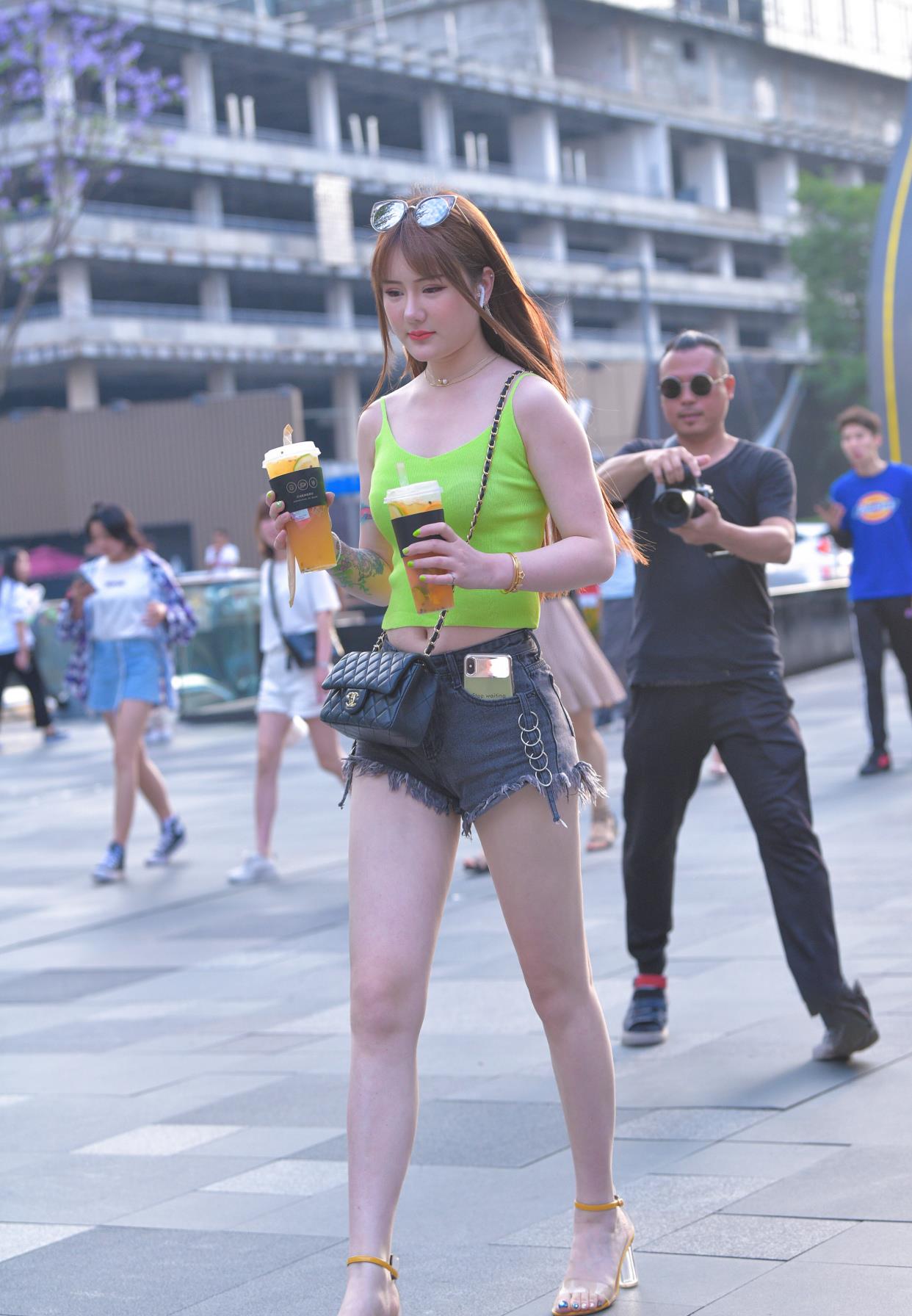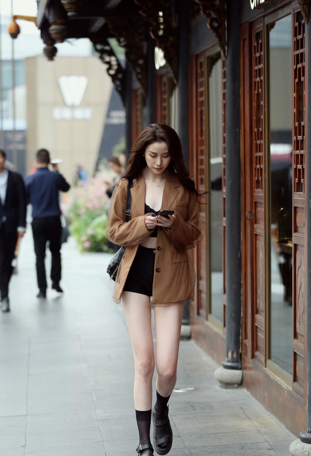 还是低头看手机的妹子身材和模样都不错