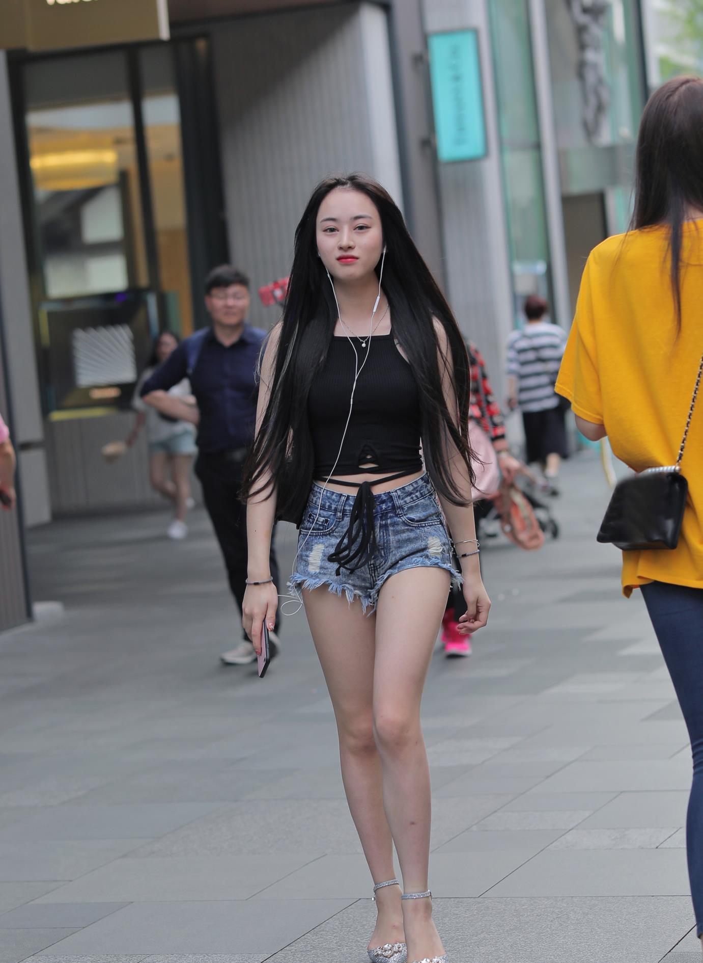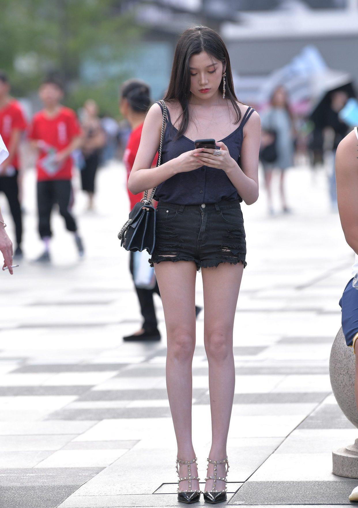 热裤大白长腿还是很好看的
