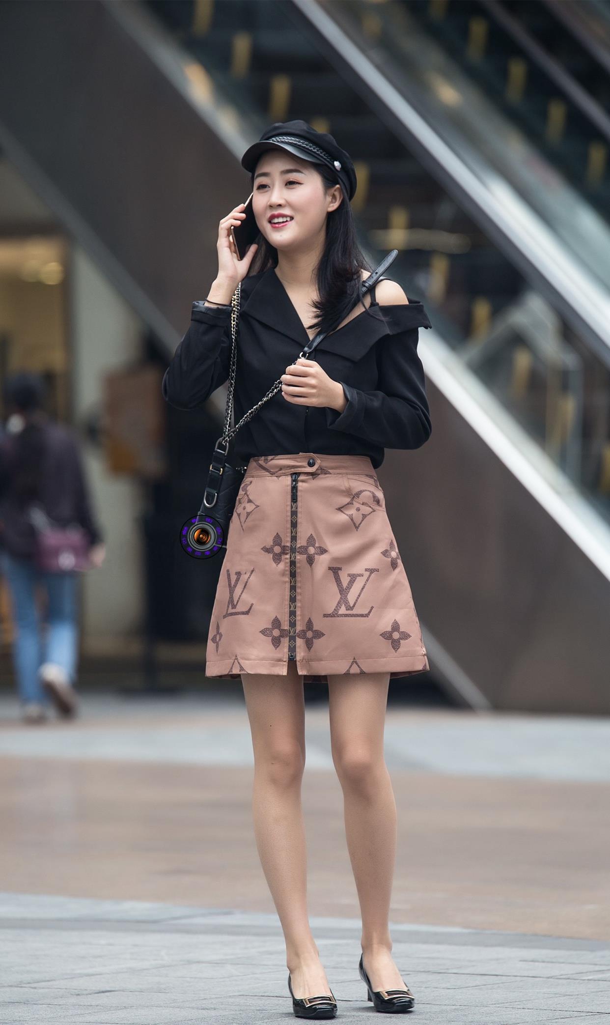 美女搭配半身裙,吸引很多男仕们眼光