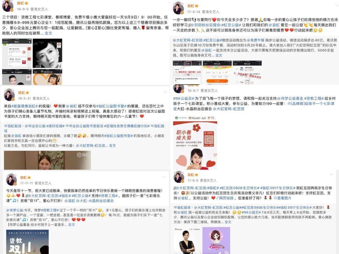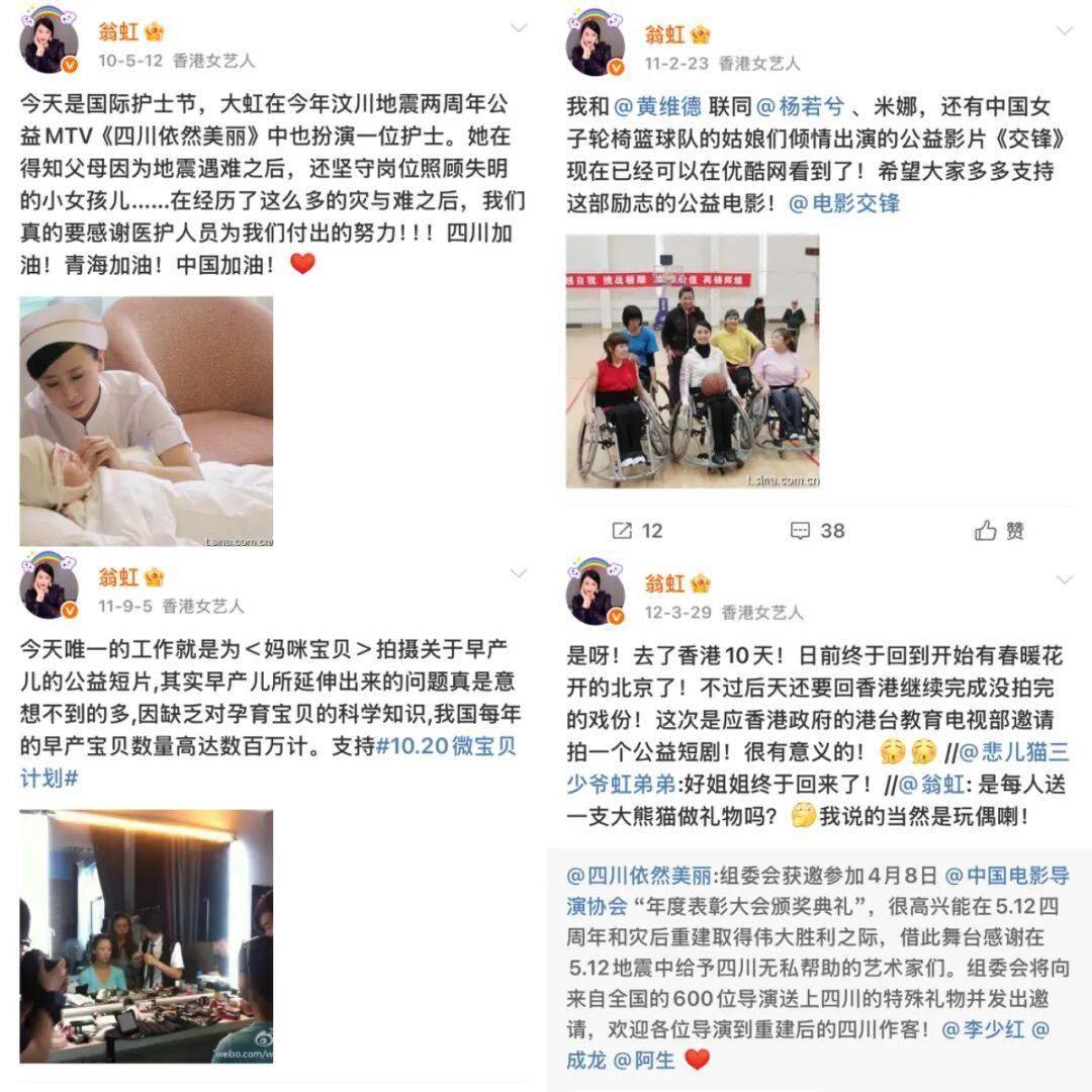 翁虹自出道以来,一直积极投身于公益事业,不仅多次参与公益短片的拍摄,