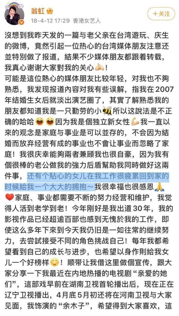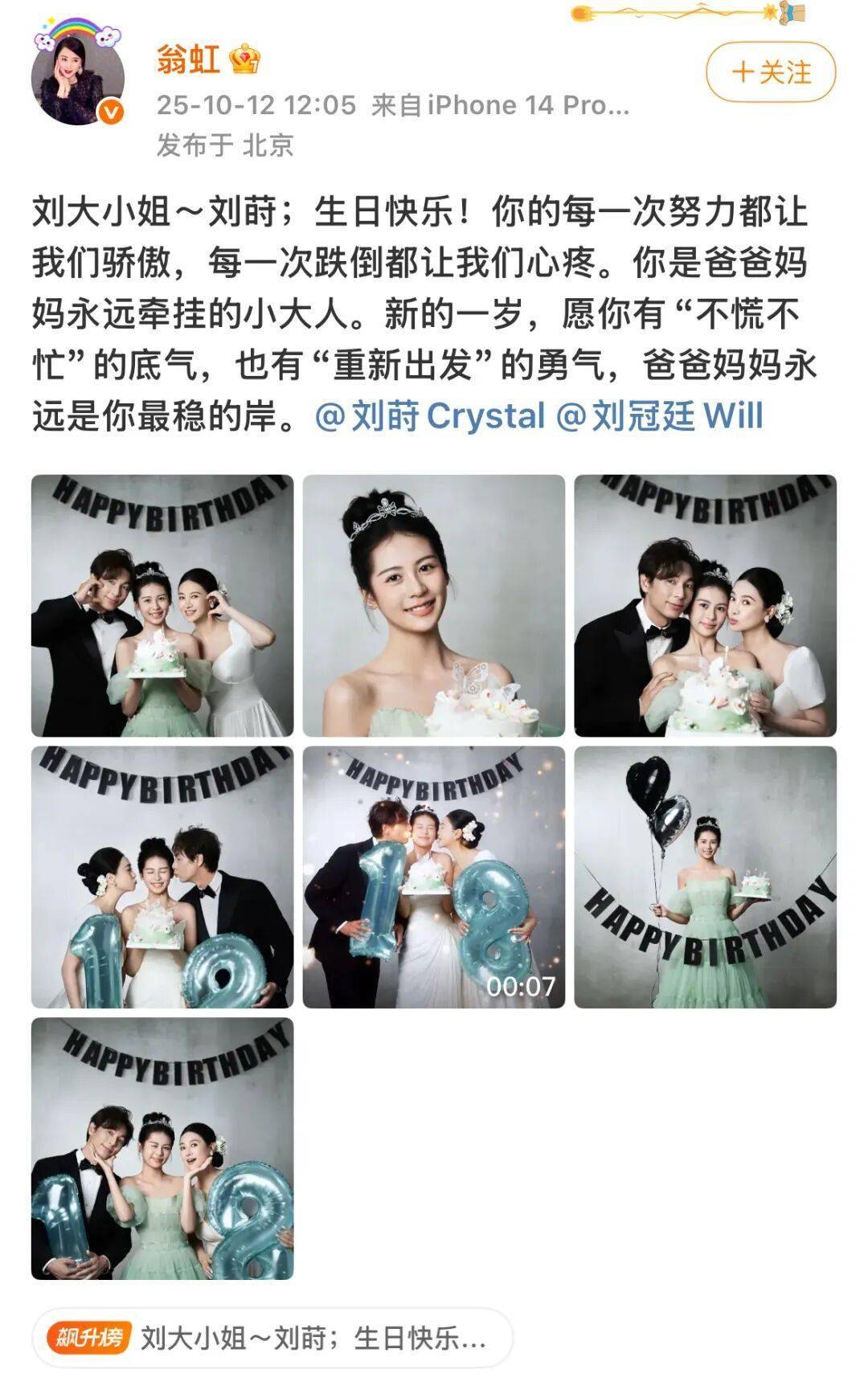 前两天橘刷到了翁虹为小水晶庆生的微博👇