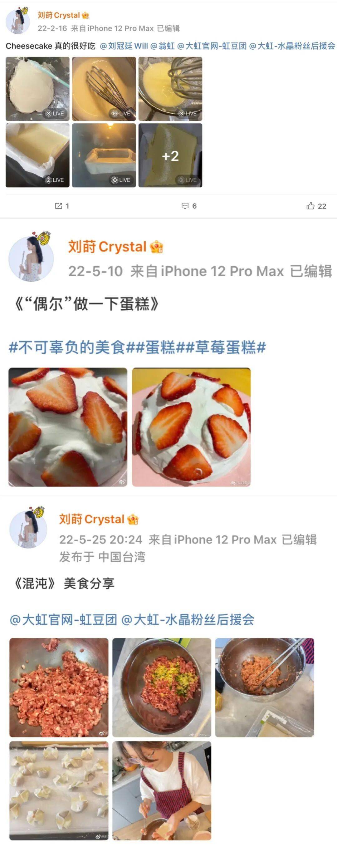 开通社交平台账号后,水晶偶尔会分享自己做的美食👇