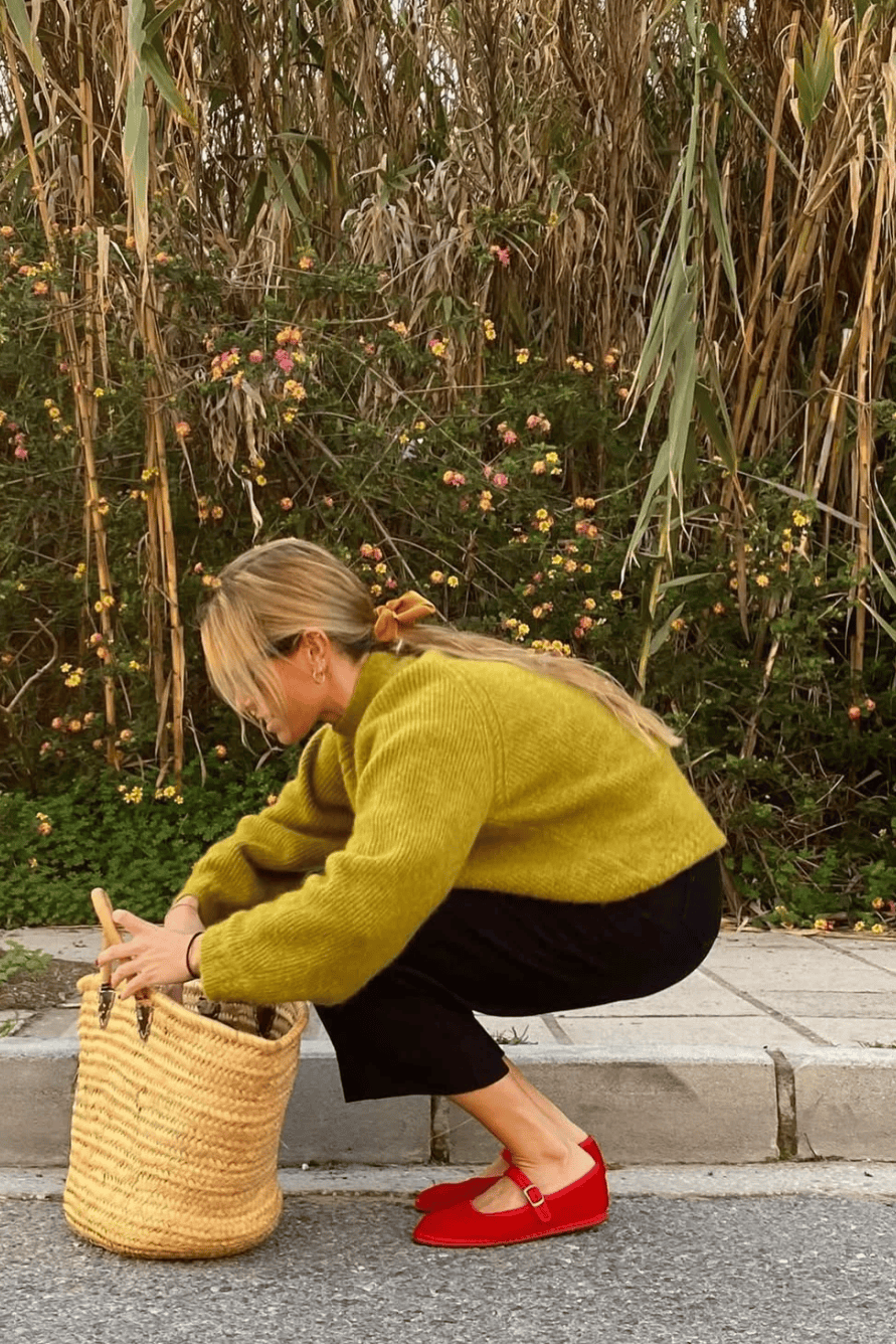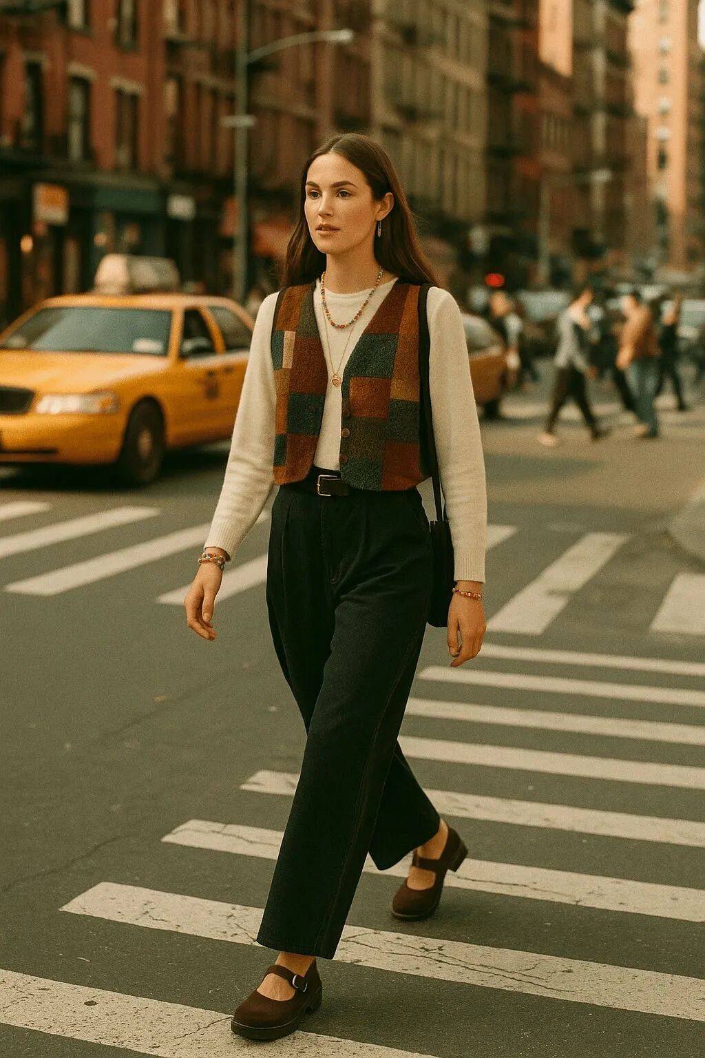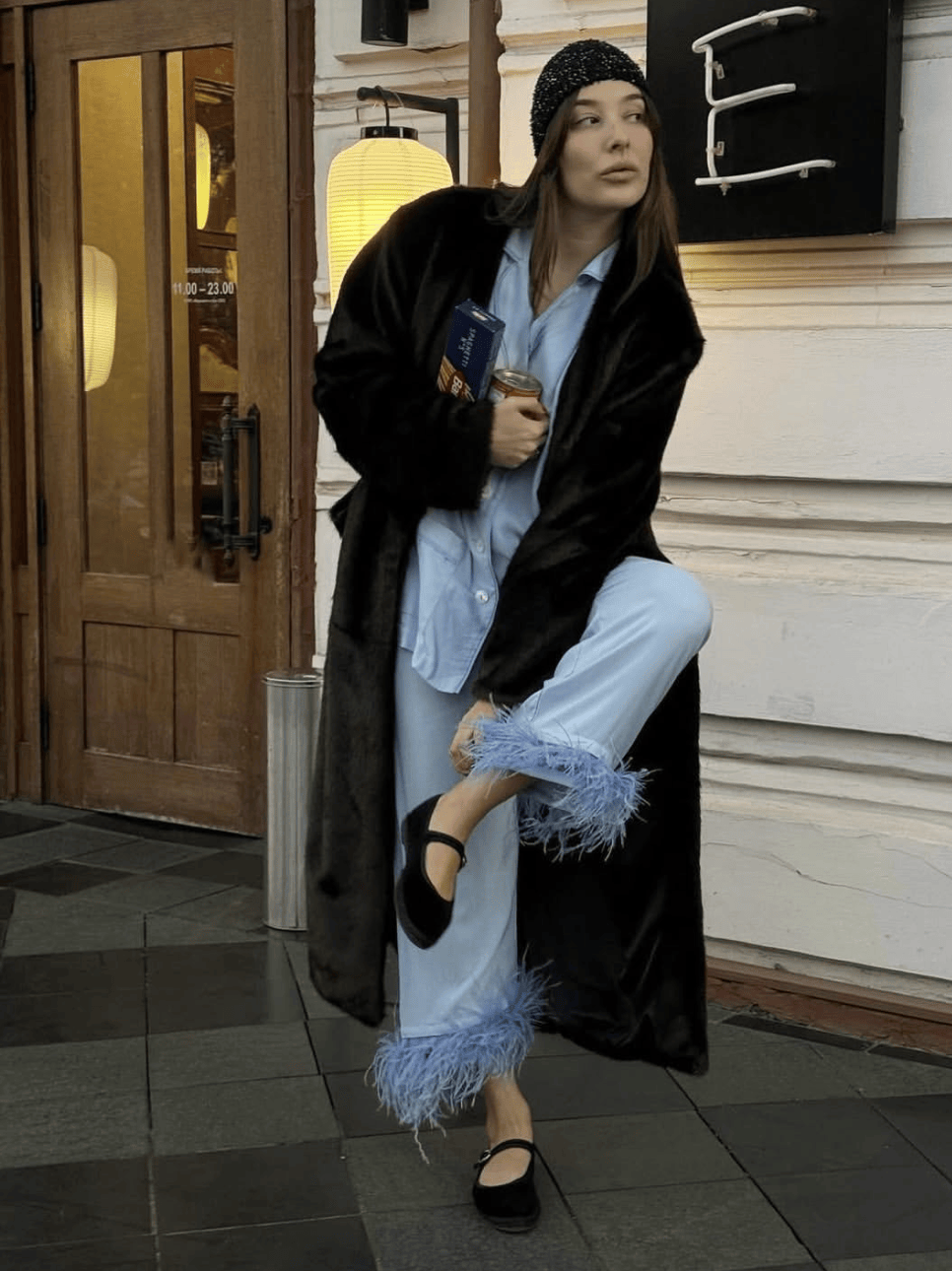 总之,上身可选择轻柔的针织,下身保持线条流畅,让丝绒鞋成为视觉的“收尾”,永远不会出错。