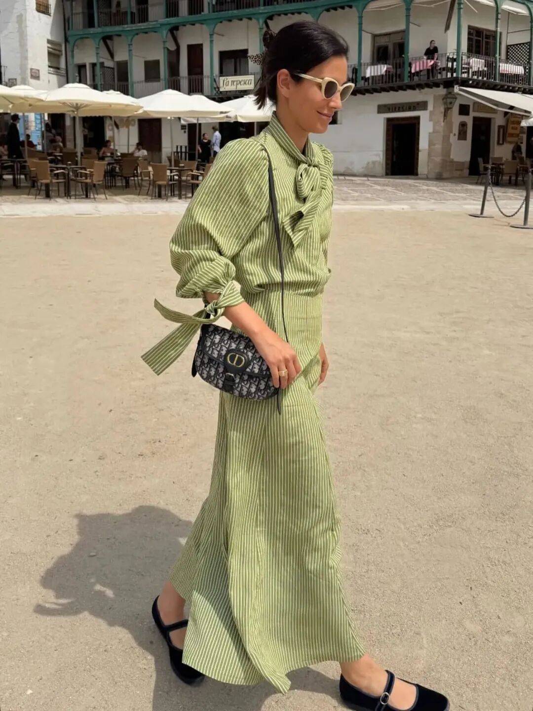 - 碎花裙/格纹裙:复古浪漫风的代表,搭配丝绒材质的德训鞋(如酒红、墨绿),如同老电影场景般浪漫动人。