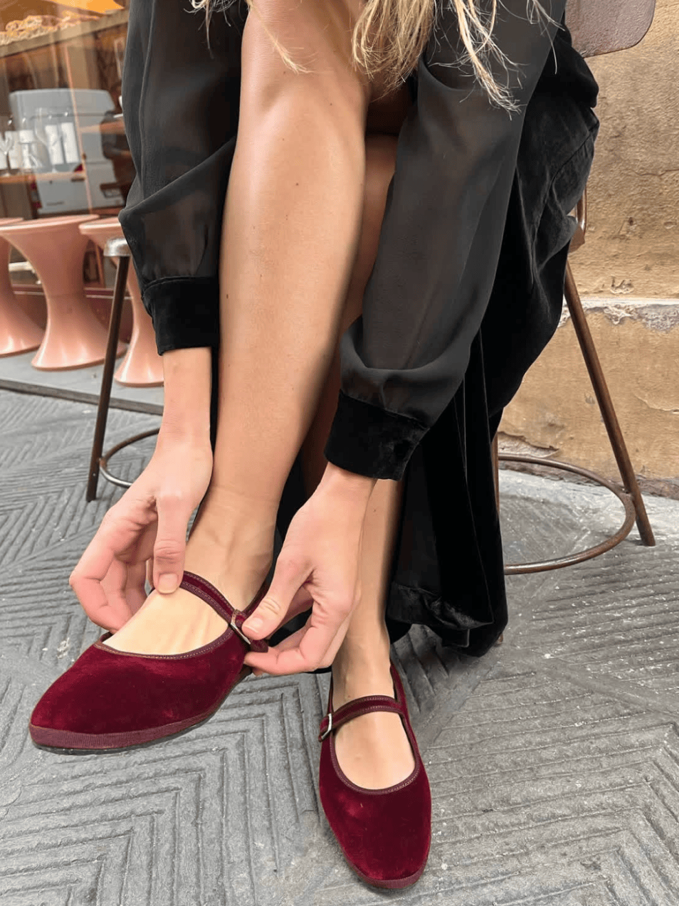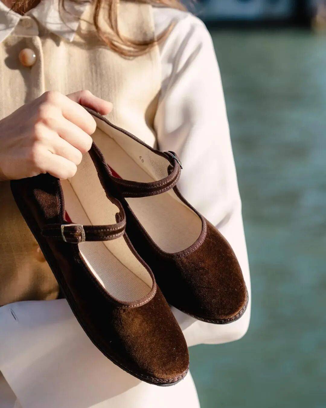 鞋面多为100% 棉丝绒材质,内衬为有机棉布,触感轻柔。其色彩搭配非常出色,尤其是酒红与深紫,兼具法式与复古气质。