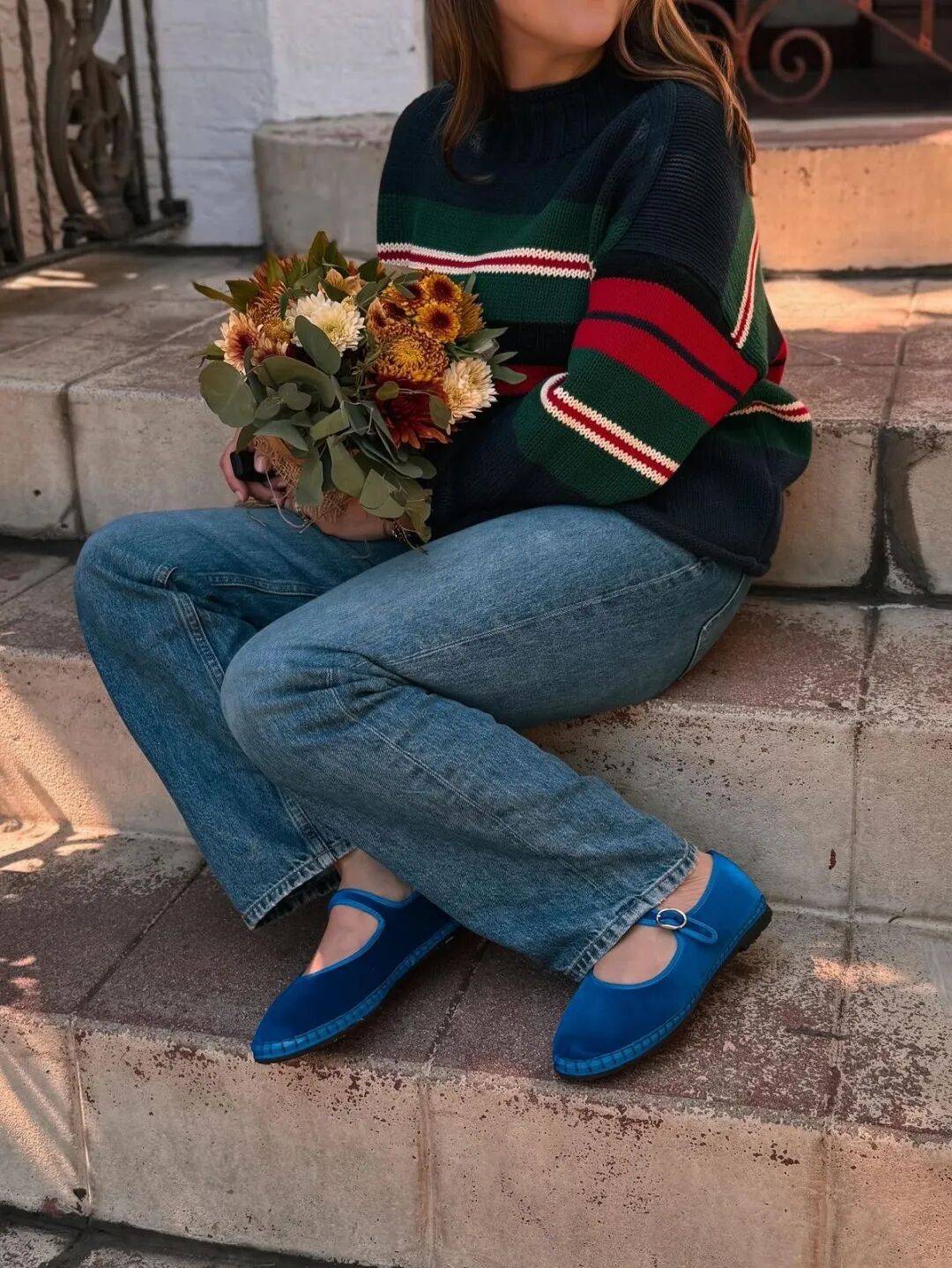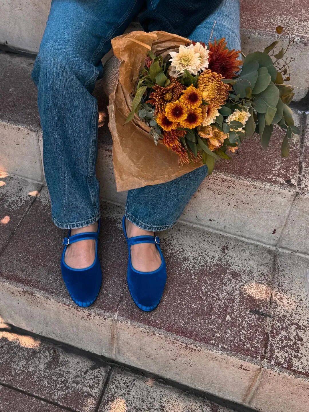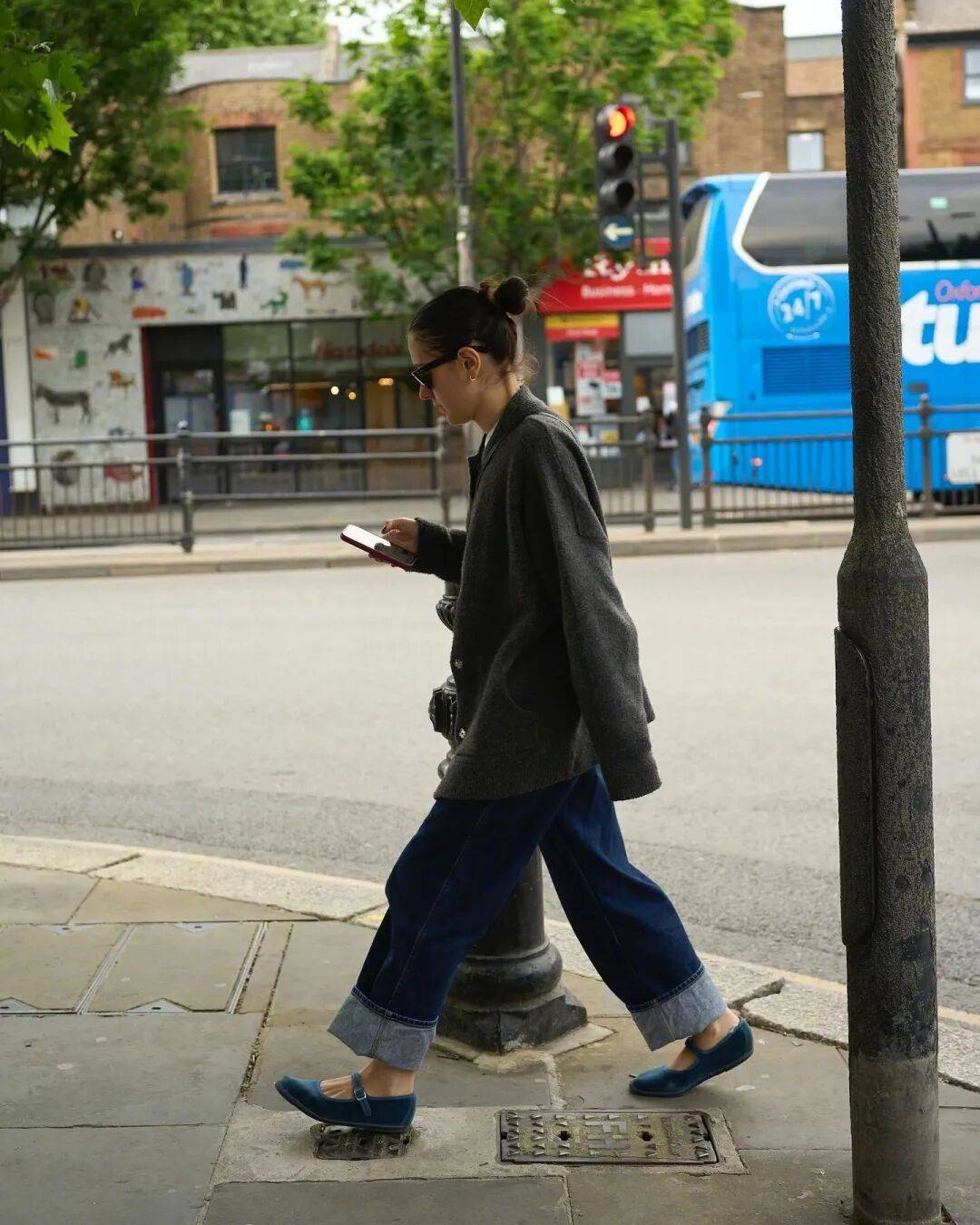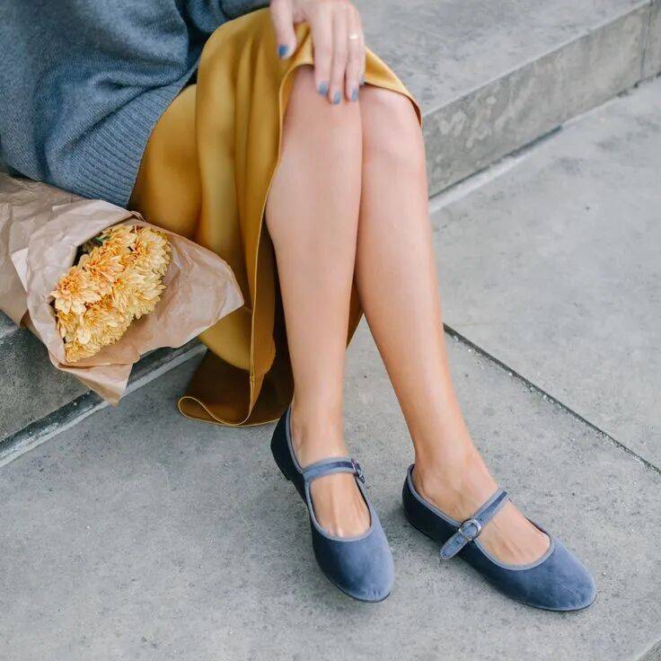 好比穿上一条长裙,再配一双深蓝或墨绿丝绒玛丽珍,像极了老电影中的场景——光影摇曳中,鞋面微光闪动,浪漫得恰到好处。