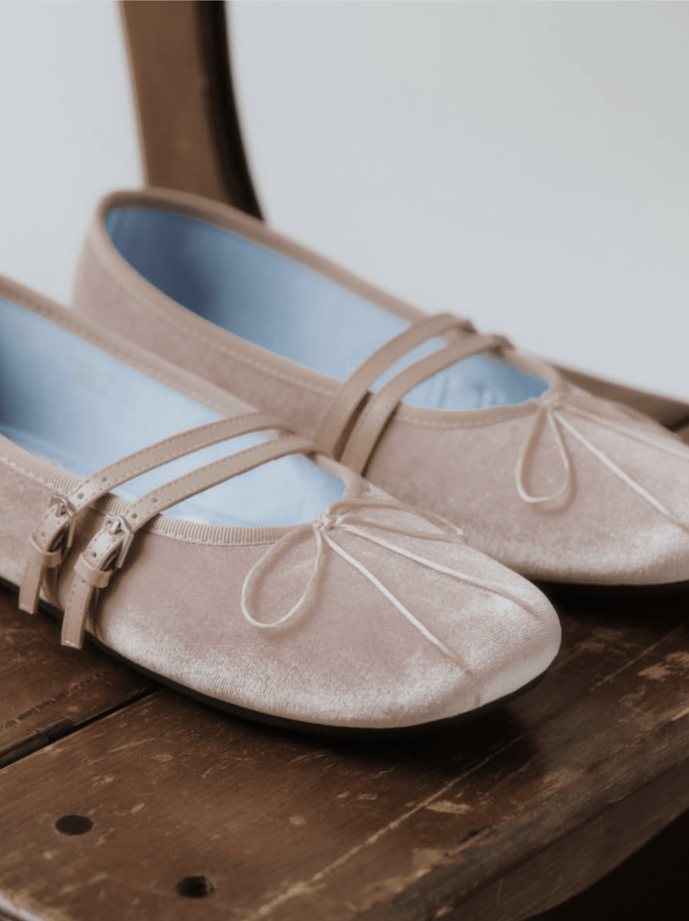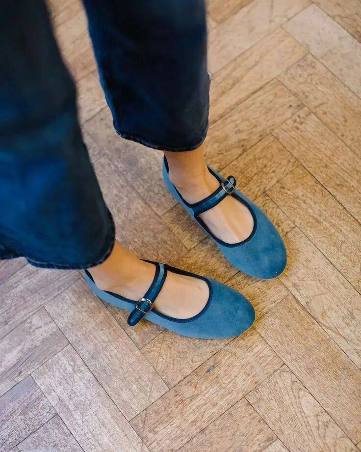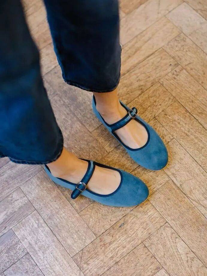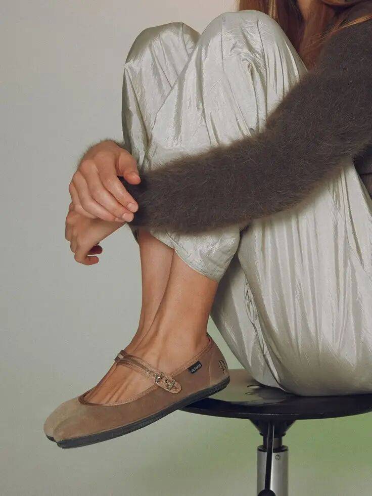 Rockfish的丝绒玛丽珍鞋以方头设计和双带结构著称,配色从浅杏到深棕,既可搭配通勤装,也能融入日常休闲造型,兼具少女感与实穿度。