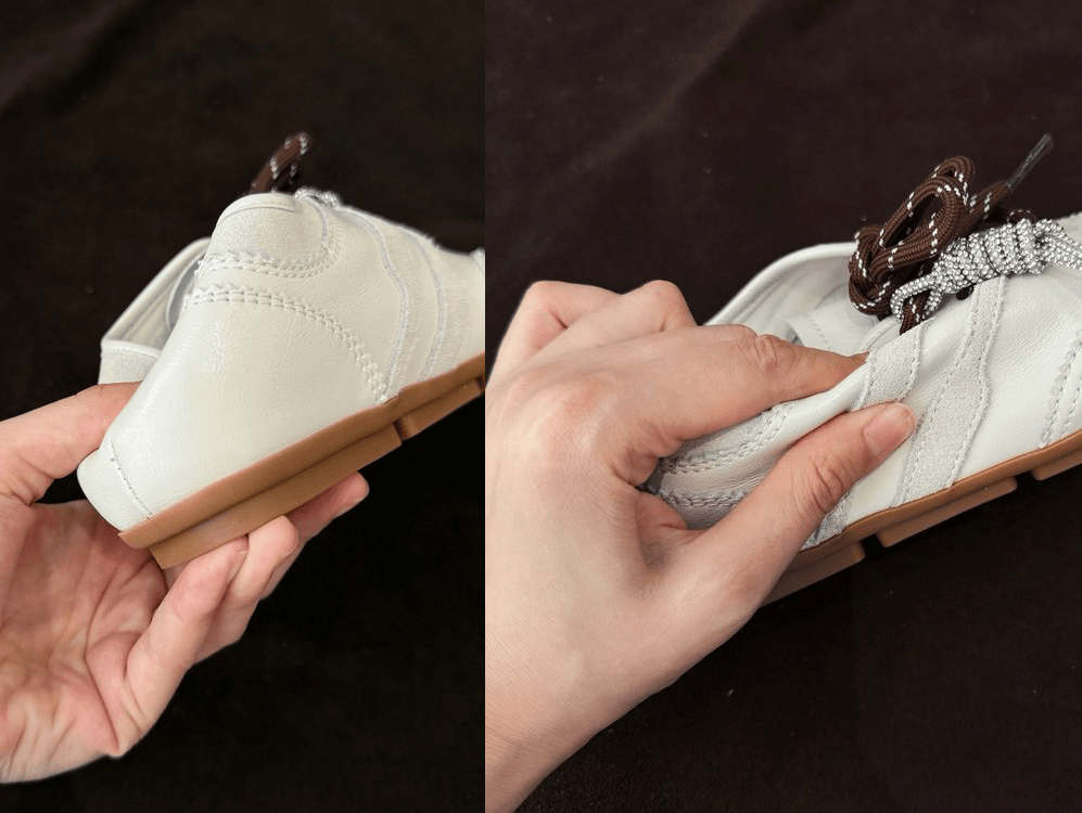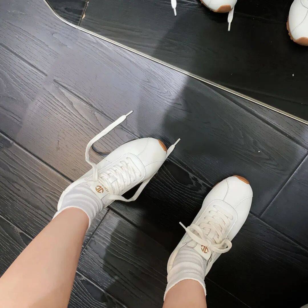 视觉上为薄底设计,实则通过鞋垫2.5cm + 鞋底1cm的内增高设计,总增高3.5cm,小个子也能悄悄显高。鞋面采用羊皮材质,柔软舒适,牛津橡胶鞋底防滑耐磨,且具备“踩屎感”般的柔软脚感,暴走一天也不累。其“零磨合”的特性更是新鞋中的奇迹,随意对折扭曲不变形,舒适度堪比数百元大牌。