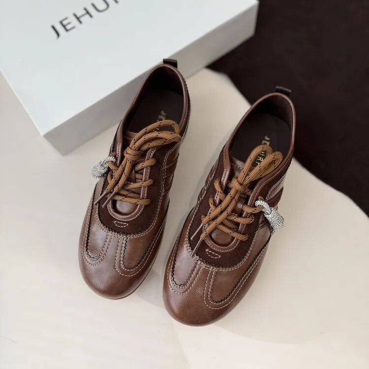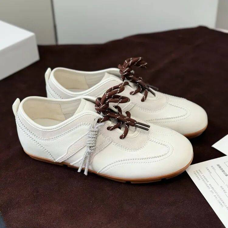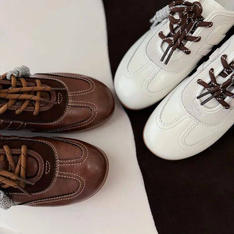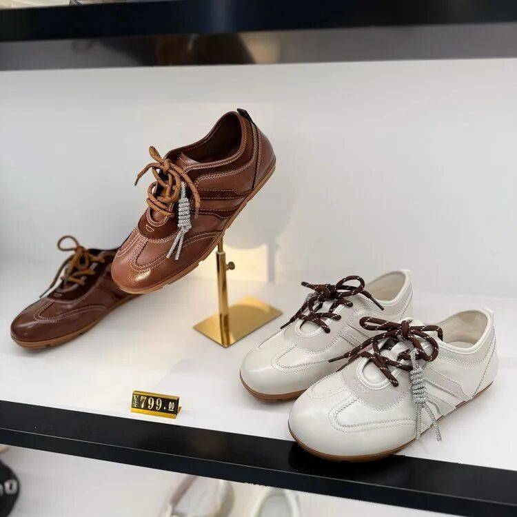 百搭性堪比小白鞋,却比小白鞋更具风格。无论是搭配裙装还是裤装,都能轻松驾驭。米白色款温柔百搭,棕色款则自带秋日美拉德色调,可轻松打造老钱风或美式复古风。