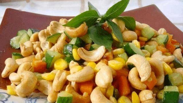 材料:腰果,玉米,胡萝卜,黄瓜,姜,食用油,盐,鸡精