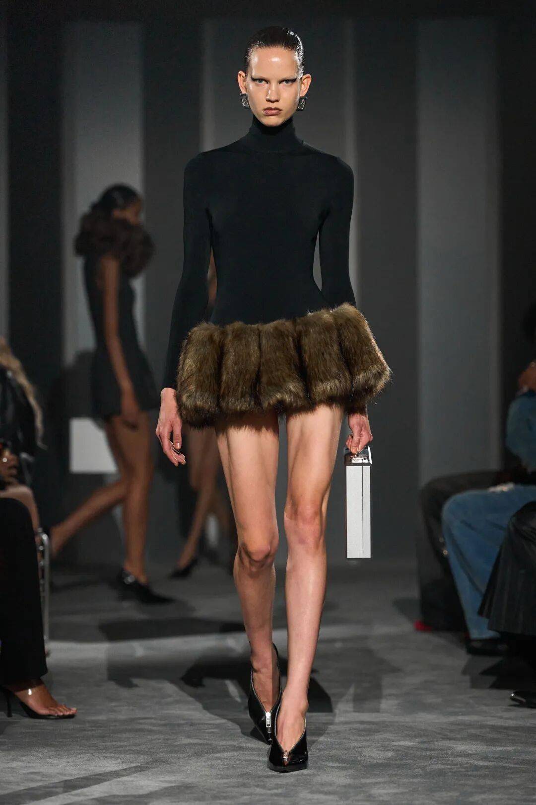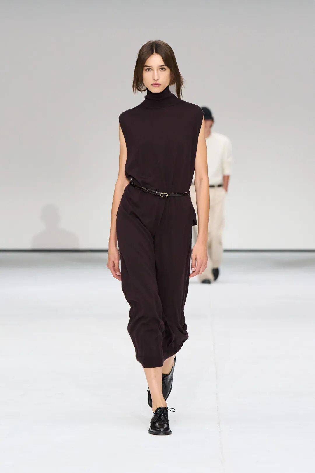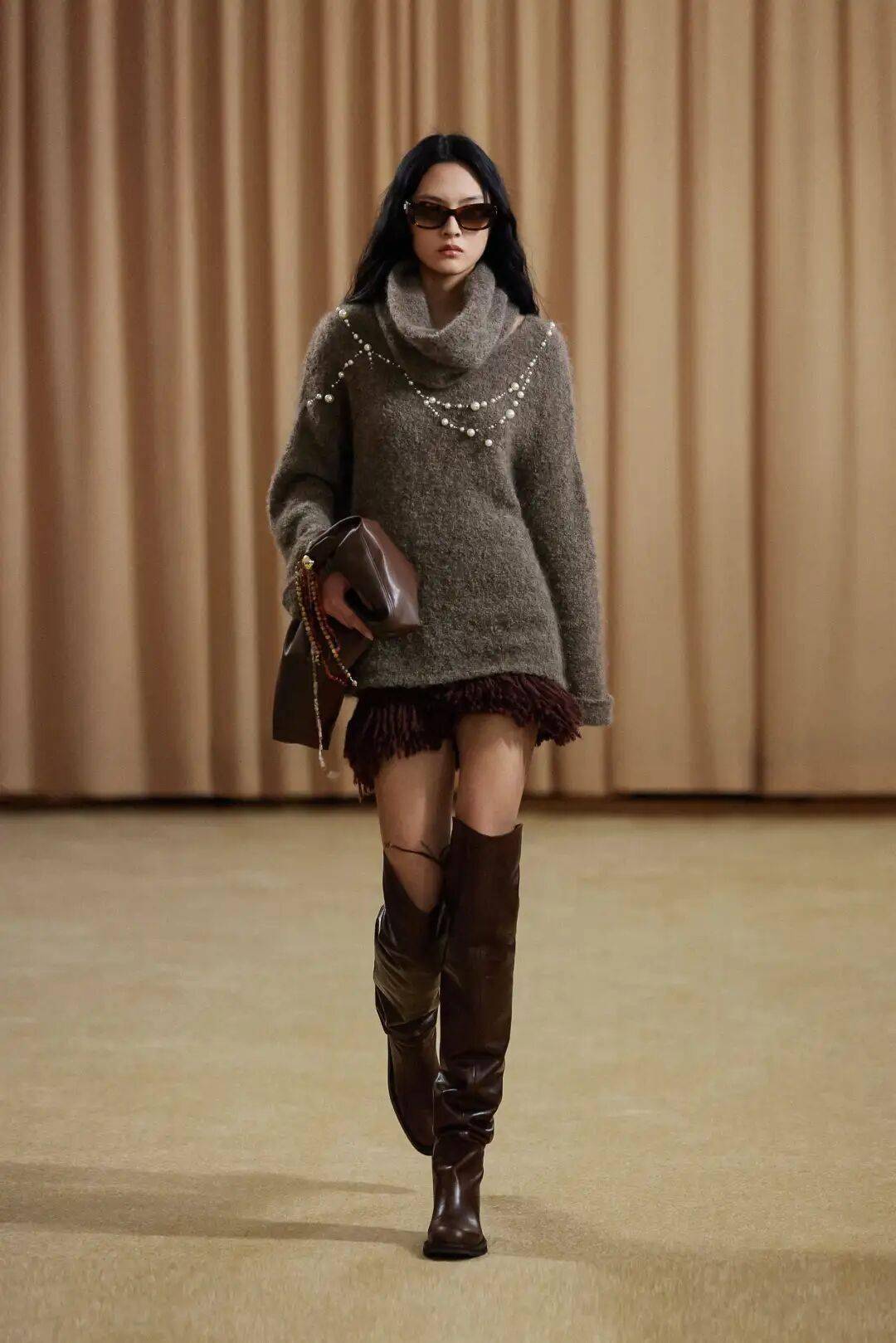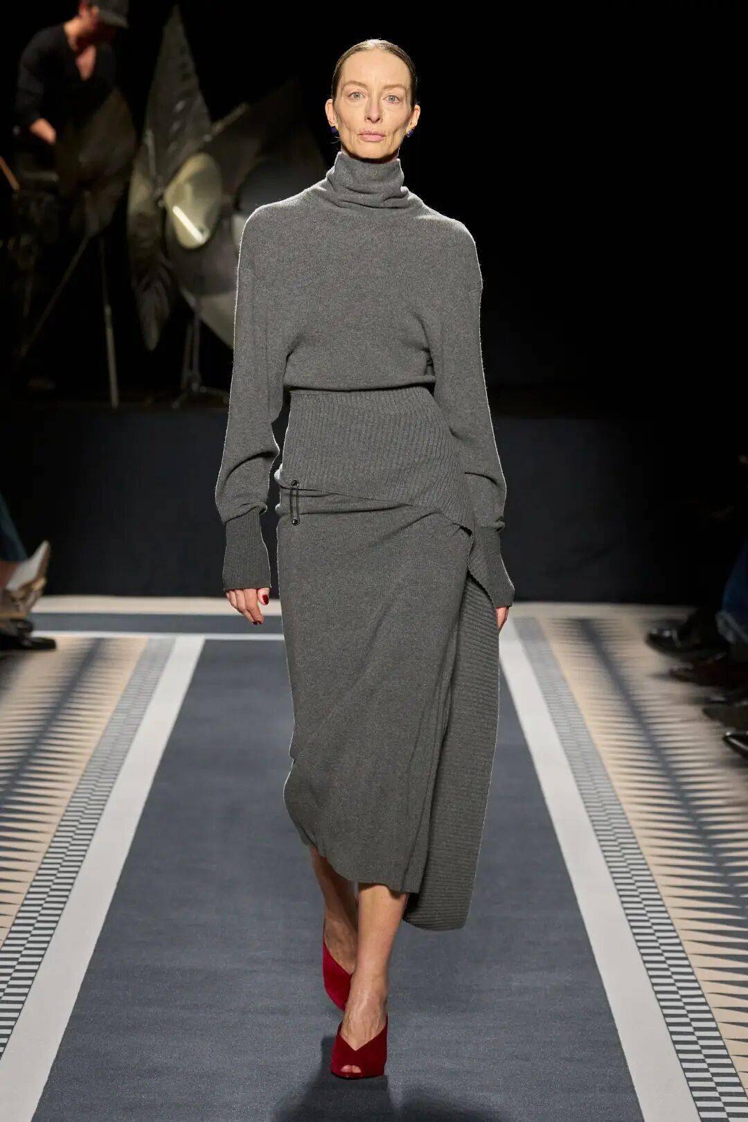 这一季的高领,超越了基础的打底功能,成为整体造型的视觉焦点。搭配oversize西装,它是不动声色的内敛底色;单穿时,搭配一条精巧项链,便在严谨的包裹中透出一线生动。正如Max Mara所示范的,高领的沉静并非封闭,而是一种从容笃定的姿态,是快节奏世界中难能可贵的温柔风骨。