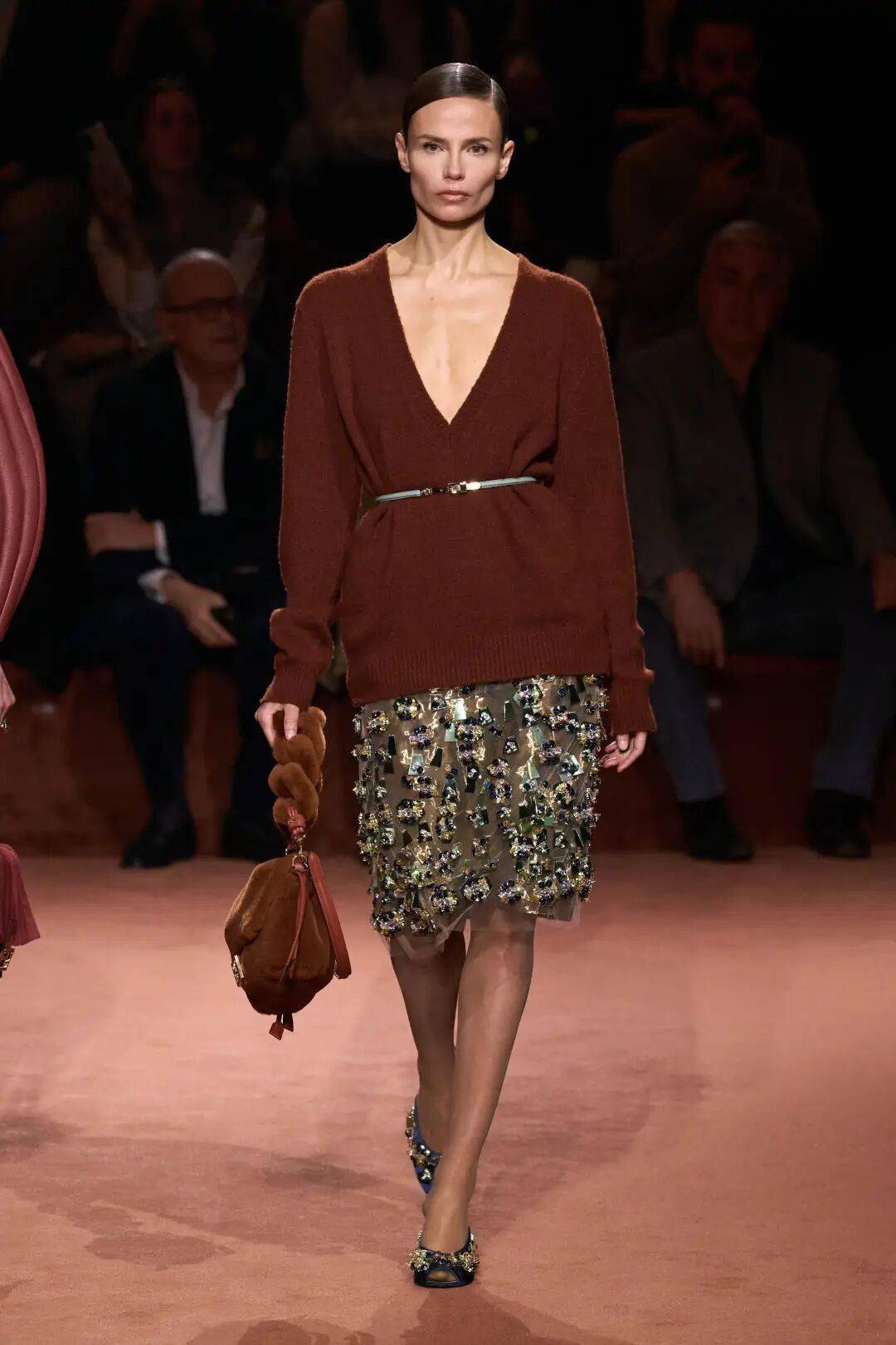 新季的深V领,在洒脱中见精致。可内搭轻薄蕾丝衬衣,演绎层次叠穿的巧思;亦可大胆真空上阵,仅以一条线条利落的金属项链点睛,展现自信光芒。从FENDI到Giorgio Armani,深V领以其不羁的纵深,诉说着一种懂得留白的智慧——真正的性感,来自收放自如的底气。