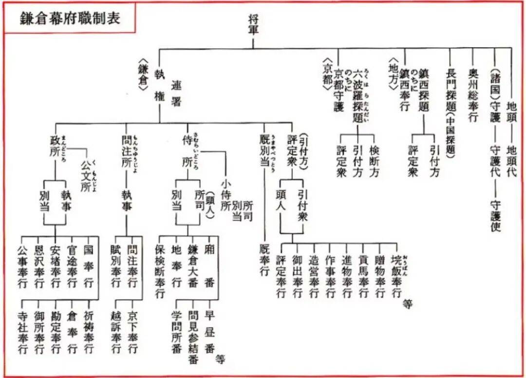 所谓幕府是全部由武士担任职务的机构,幕府在中央、地方设立了完善的统治架构,将统治触角延伸至全国,形成了与天皇朝廷并行的“二元政治”统治架构。