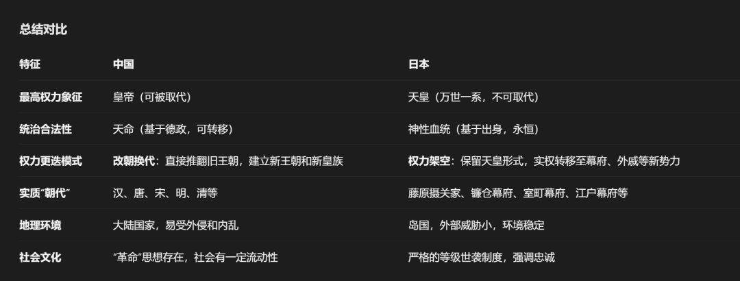 相比之下,日本虽有内乱和幕府更迭(如镰仓幕府、室町幕府、德川幕府的交替),但这些更迭并未触及天皇家族的根本。幕府之间的权力斗争更像是“改朝换代”的变相形式,但均以维护天皇制度为前提。