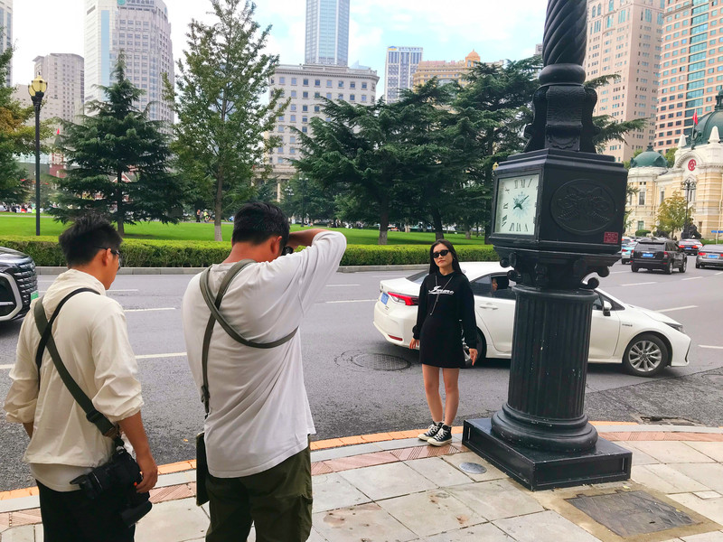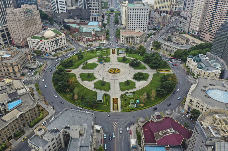 中山广场的圆形辐射状设计,让人联想到巴黎的戴高乐广场。十条道路、十栋建筑,如十首不同的诗篇,诉说着大连的多元文化。作者在此拍摄海鸥牌钟表、郭沫若题字,试图拼凑出城市的历史拼图。