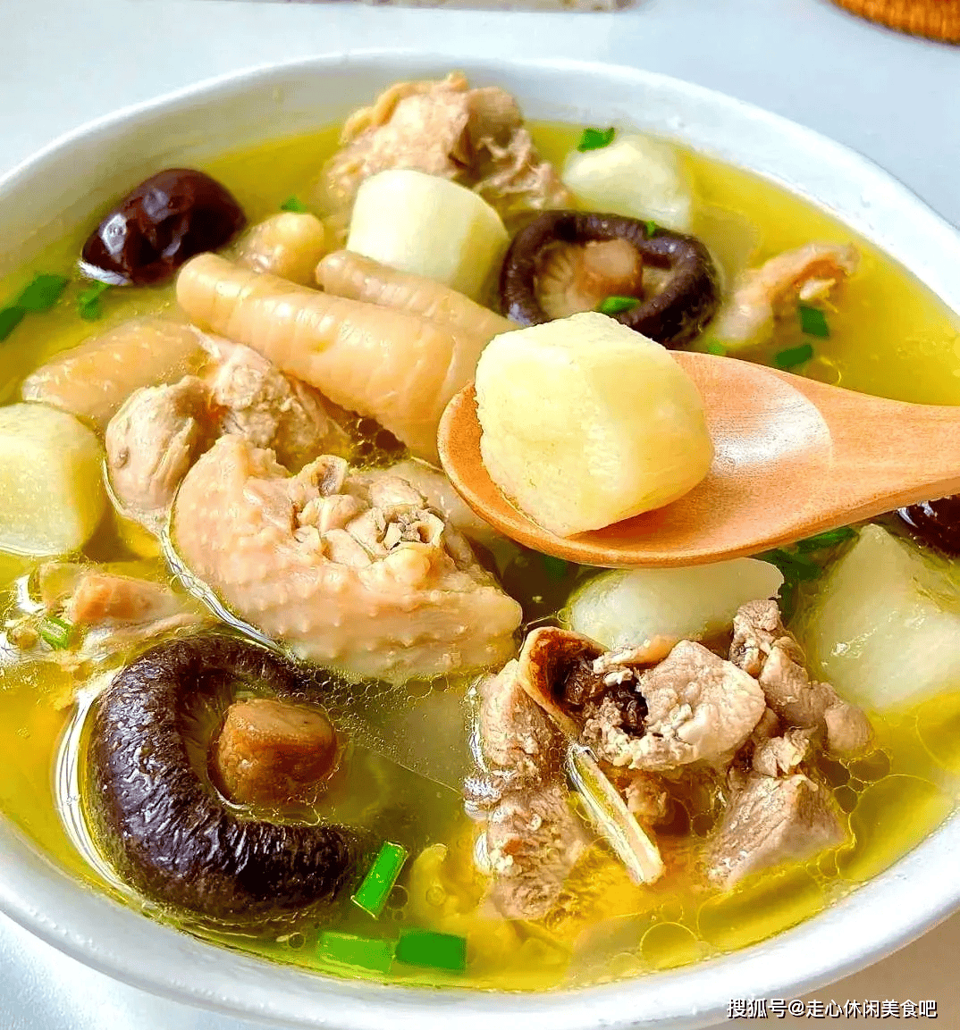 山药后放可保持其脆嫩口感,避免长时间炖煮导致煮烂。此汤品温热饮用效果最佳。