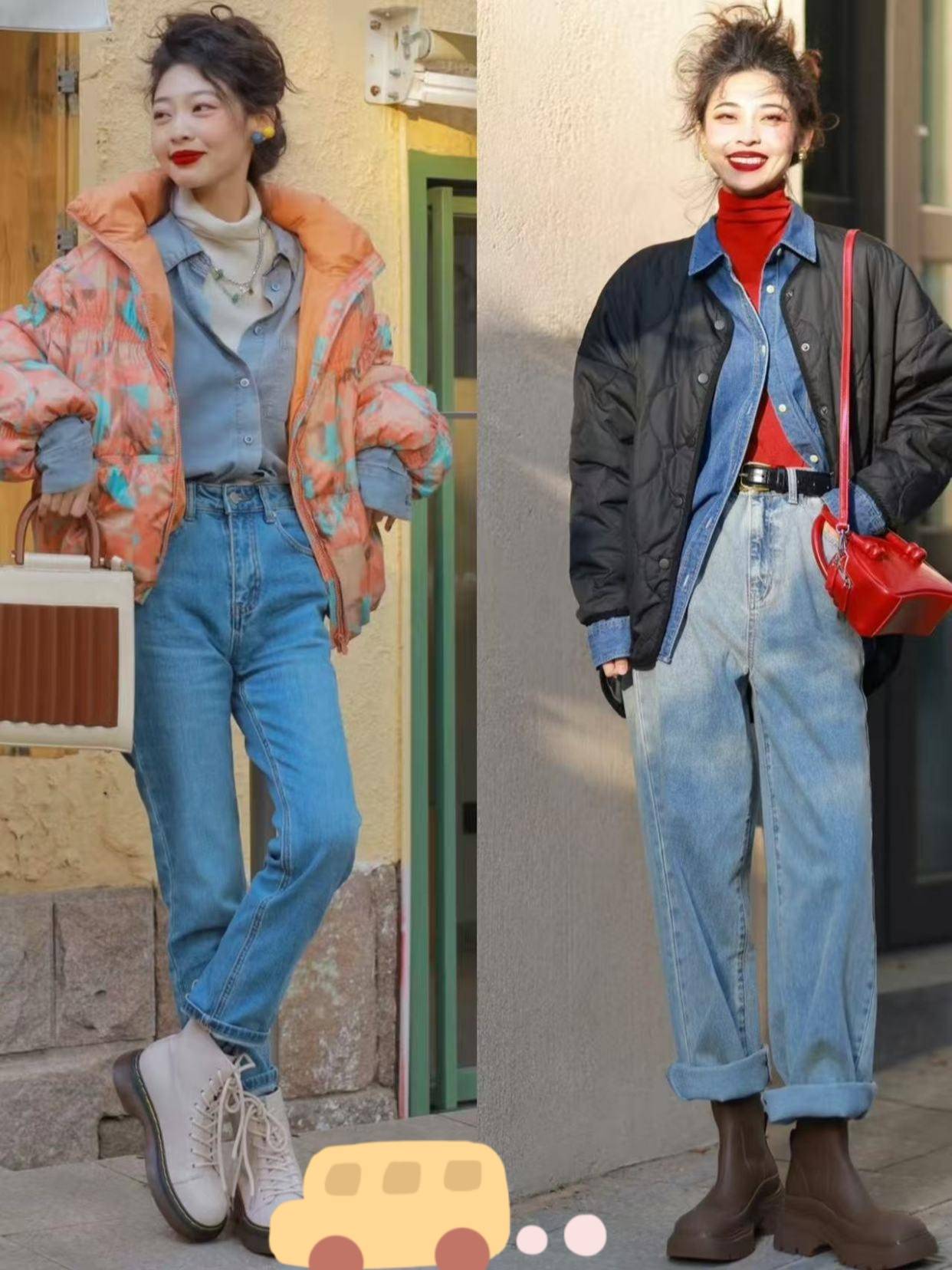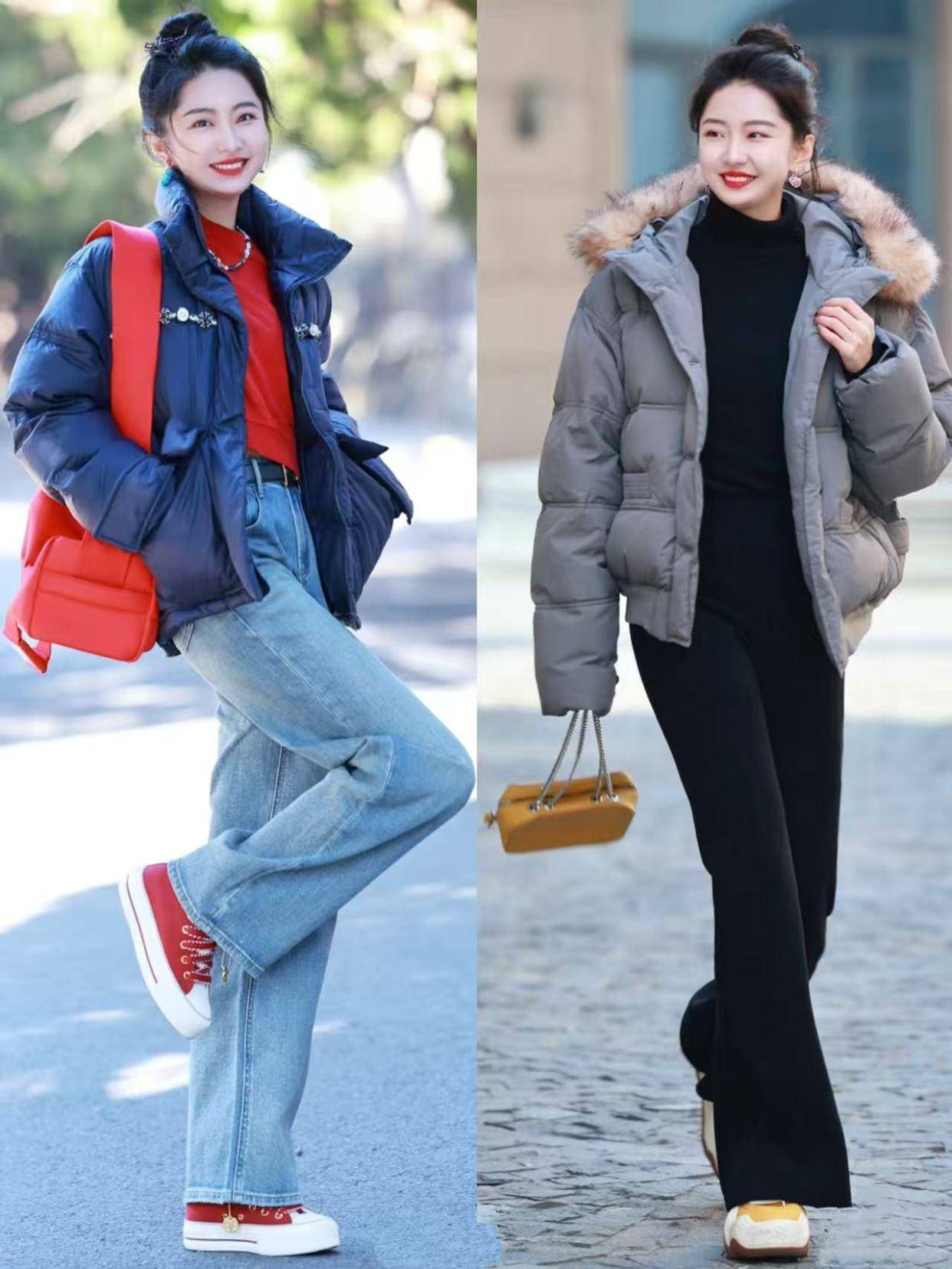 今年流行“羽绒服叠穿”,通过多层次穿搭打破单调: