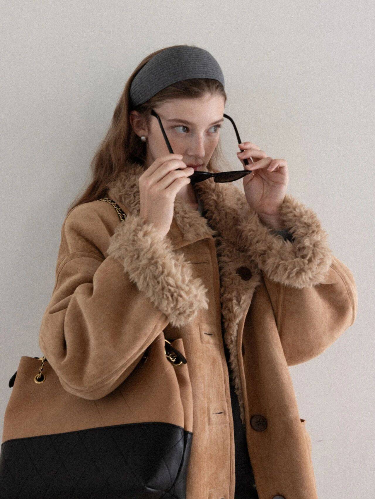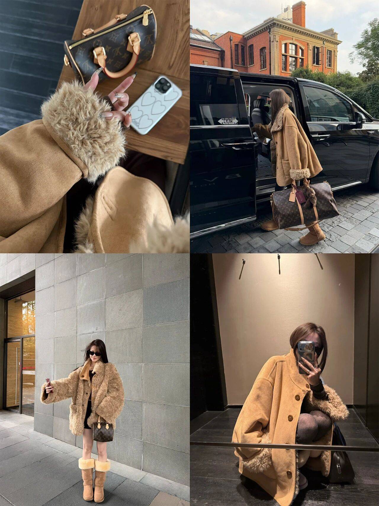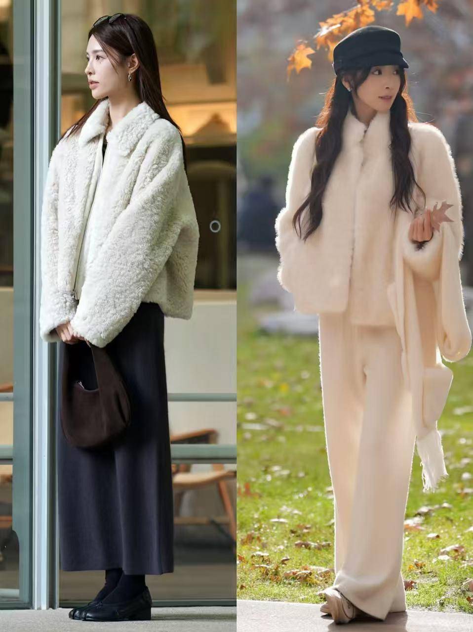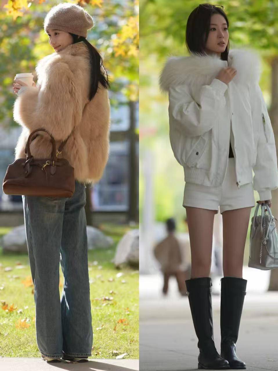 配色公式:基础色皮草(黑/棕/灰)搭配亮色内搭,或通过贝雷帽、金属链条包点缀提升精致度。