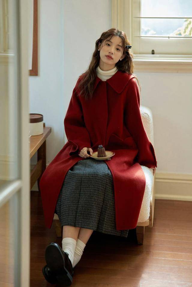 丝绒暗红马面裙配米白羊绒衫,或选盘扣短款红外套搭黑色阔腿裤,国风韵味拉满。