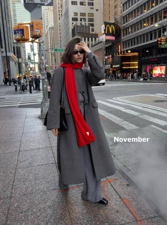 红色又能打破灰色的沉闷,让你瞬间成为焦点,让基础款单品,也能拥有稳定的高级感。