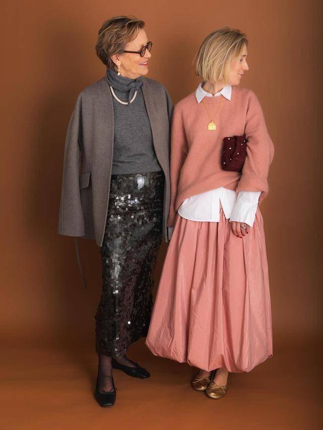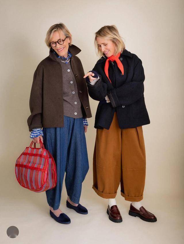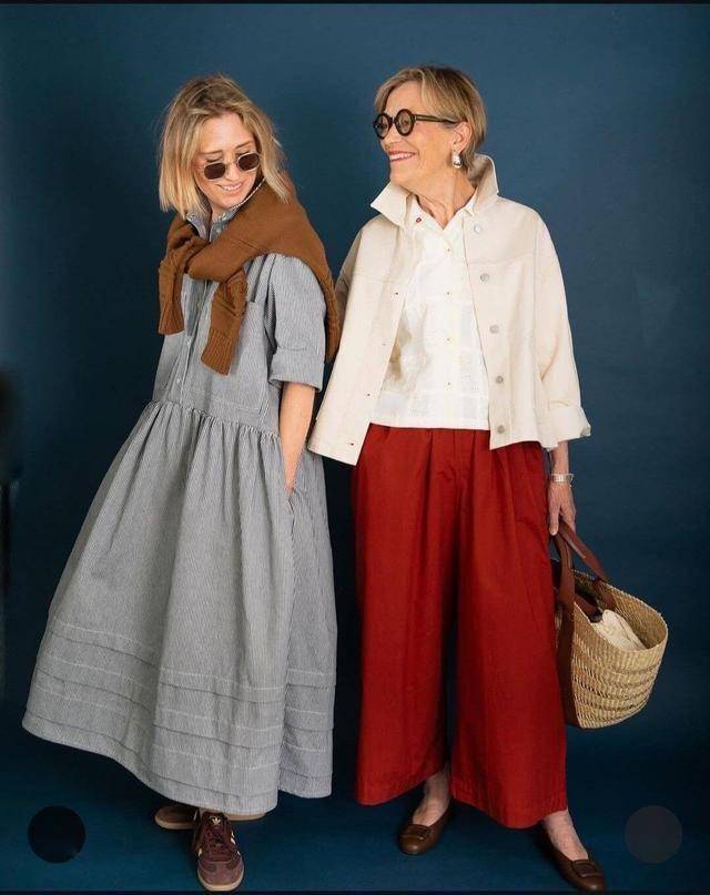 这对母女的穿搭精髓在于 “不靠花哨赢在细节”,通过基础款+高级配色+利落剪裁,既保留了年龄沉淀的从容感,又消除了穿搭违和。