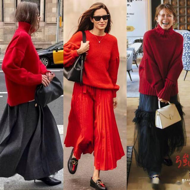 针织衫+半裙    柔和材质+量感配饰平衡繁琐    想凸显女性气质者