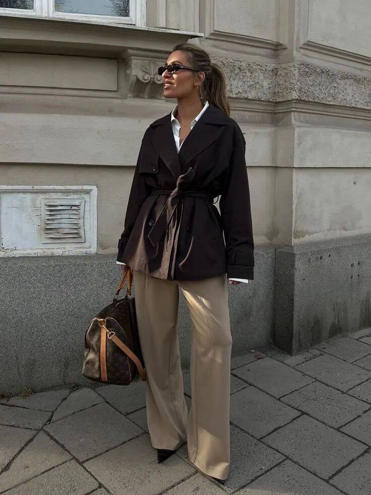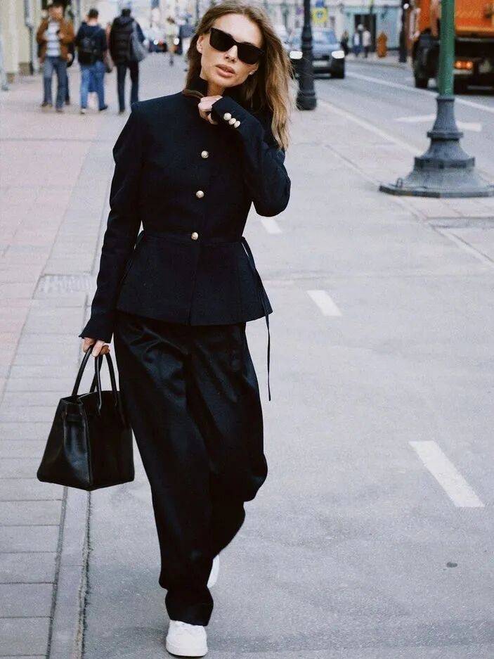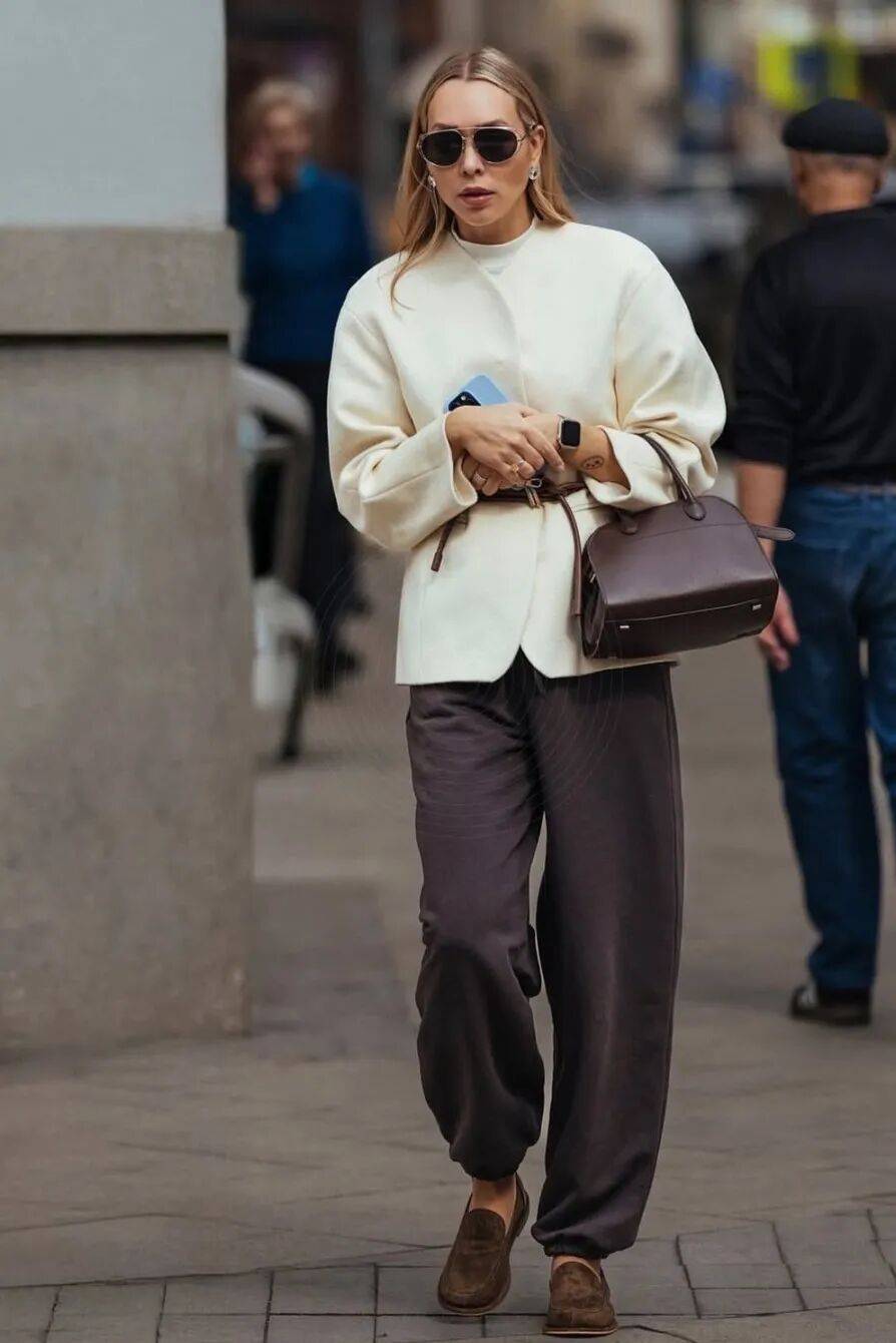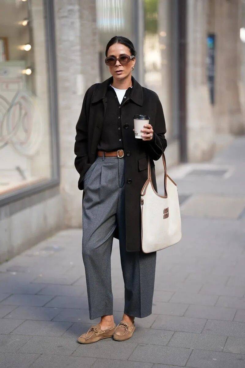 想要营造干练专业的通勤形象,可以用它搭配直筒裤和平底鞋。