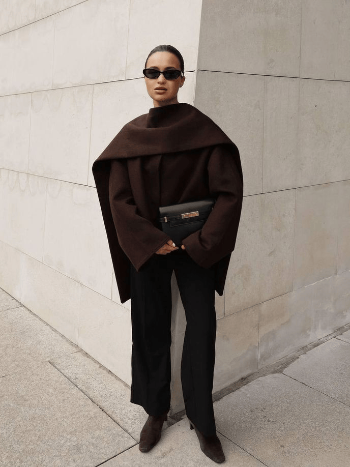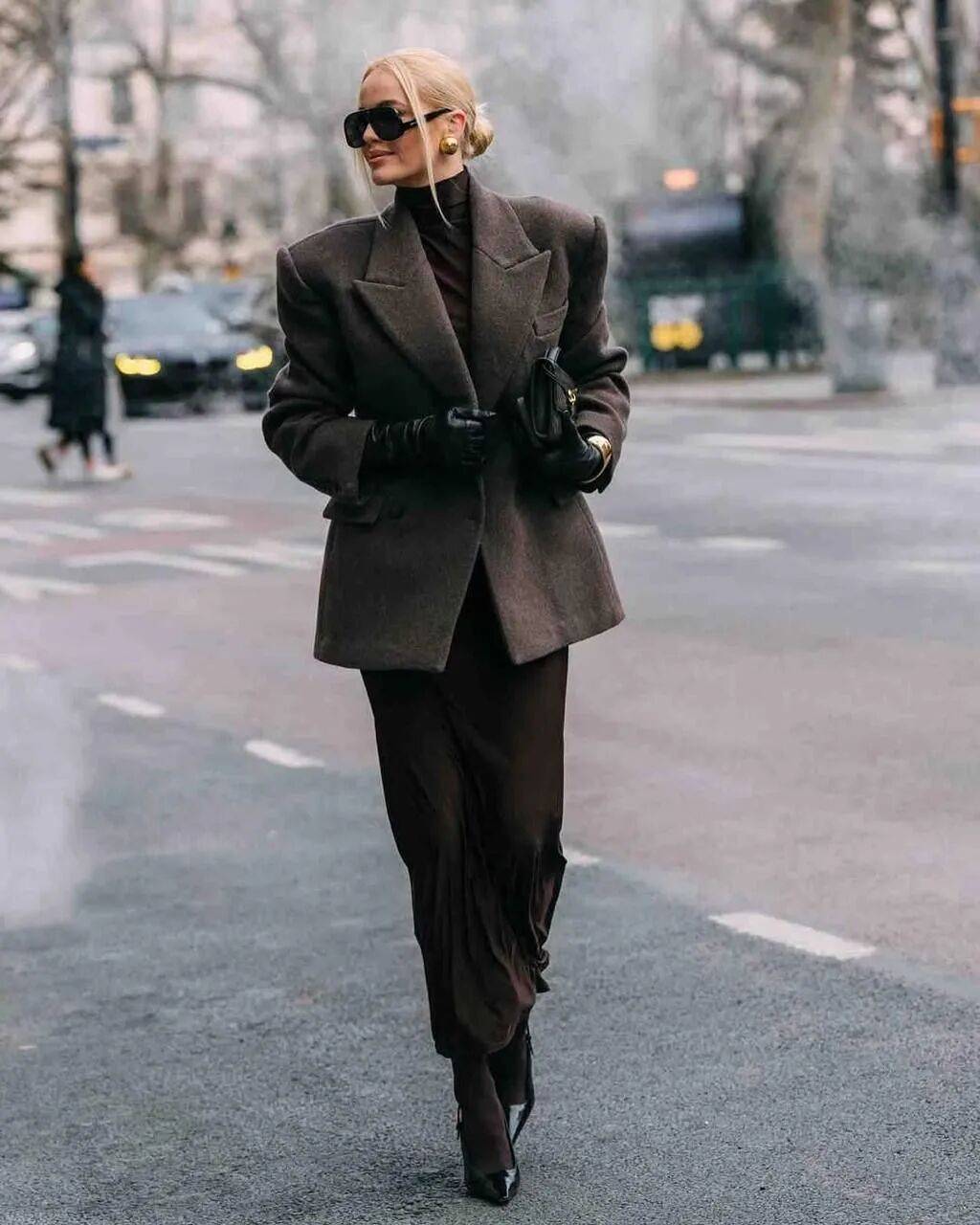 这种清晰的建筑感轮廓,如同精心规划的空间艺术,在肌肤与外套之间预留了恰好的空间。